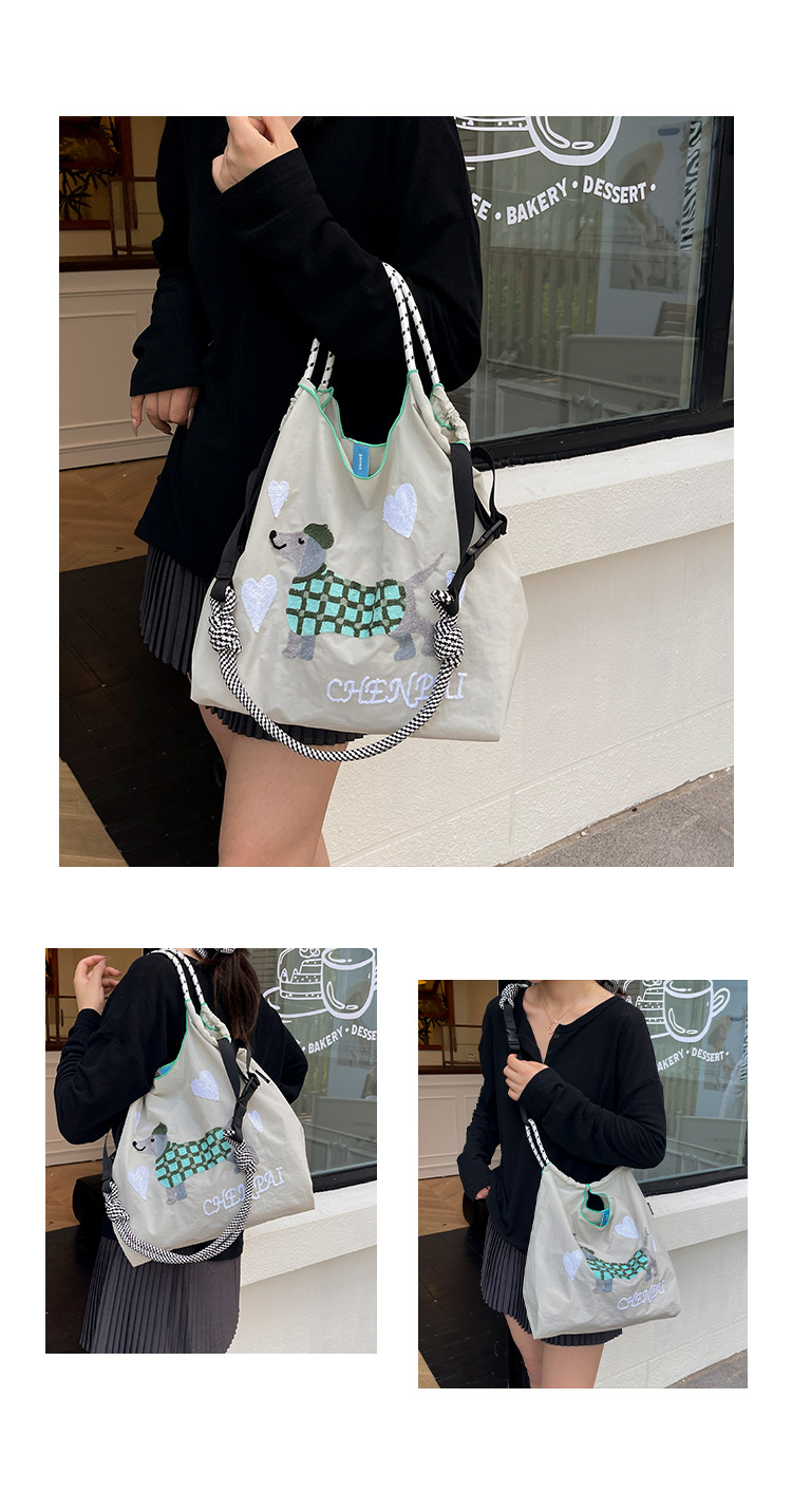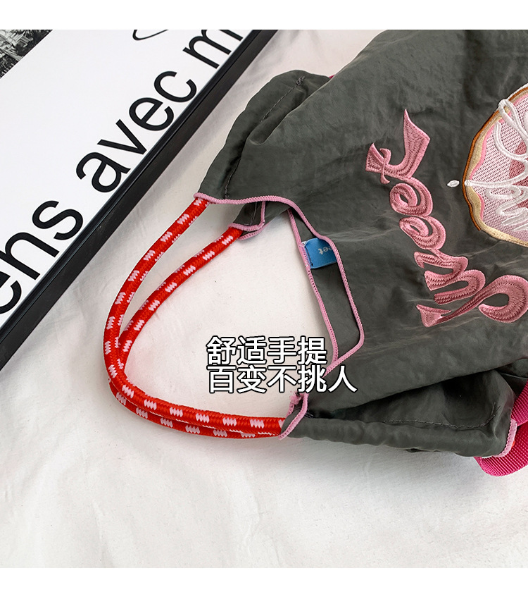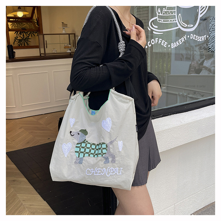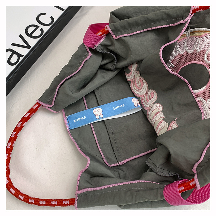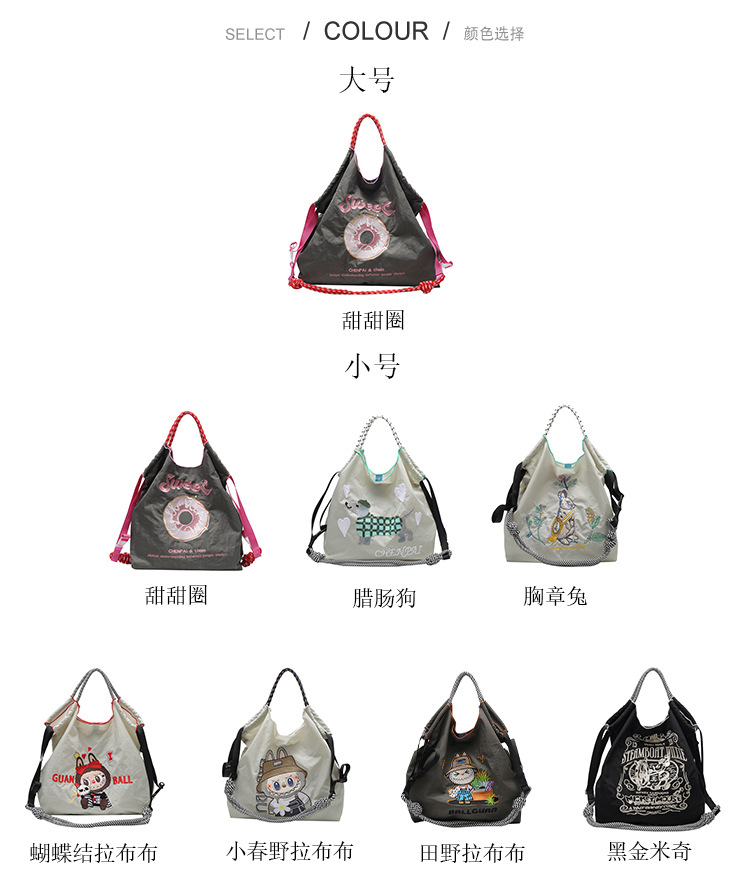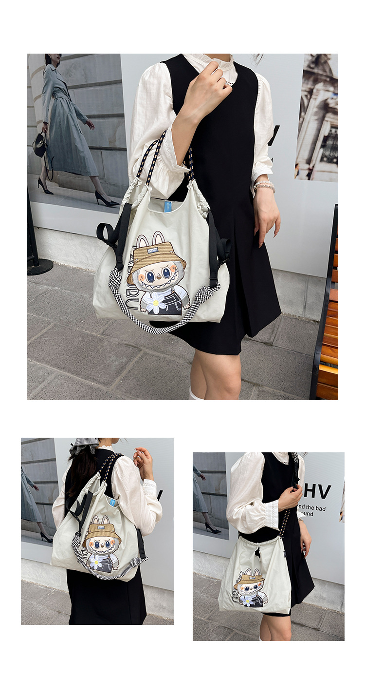 夏季新款日系刺绣labubu可爱单肩斜挎包托特包尼龙环保购物袋女包