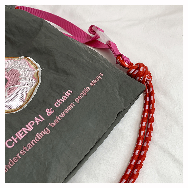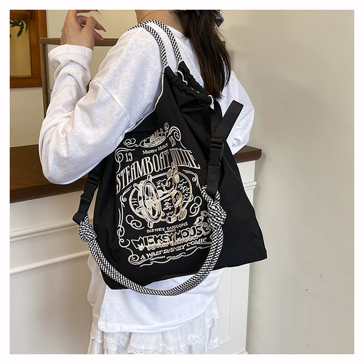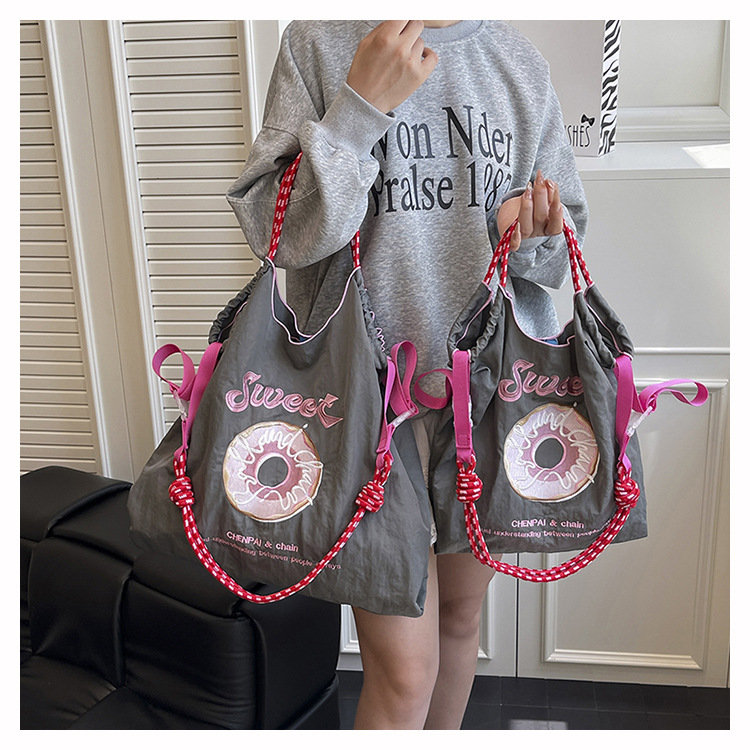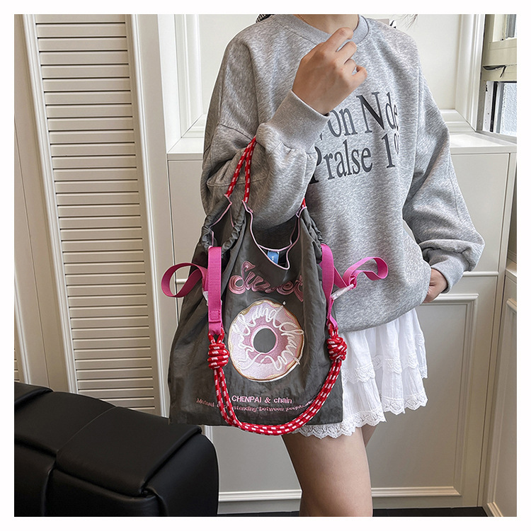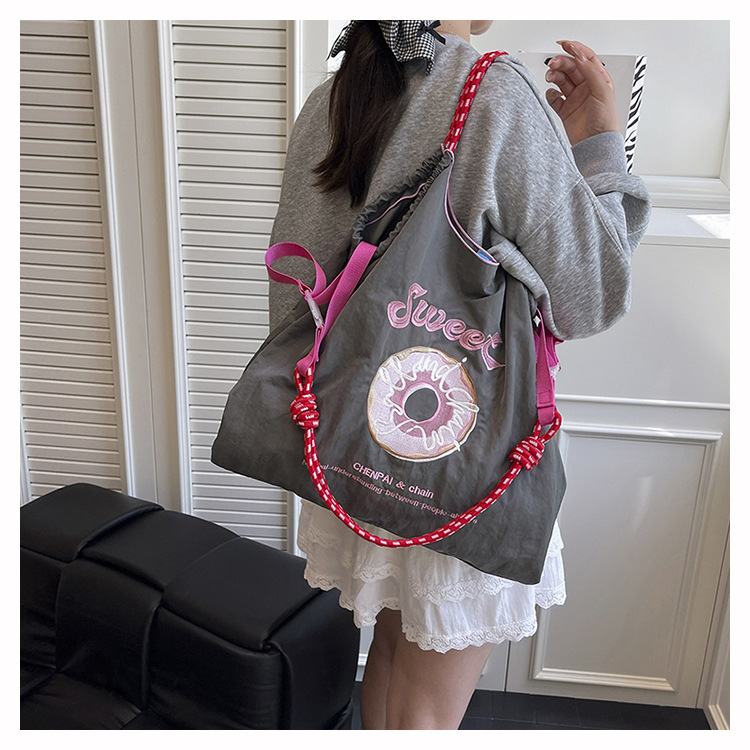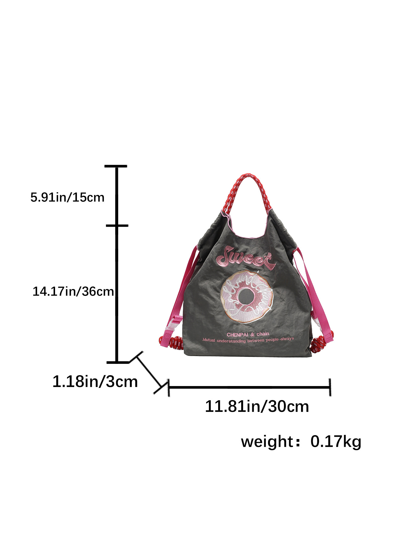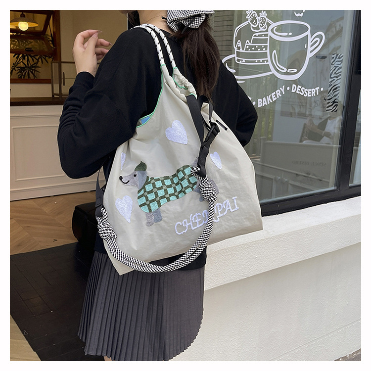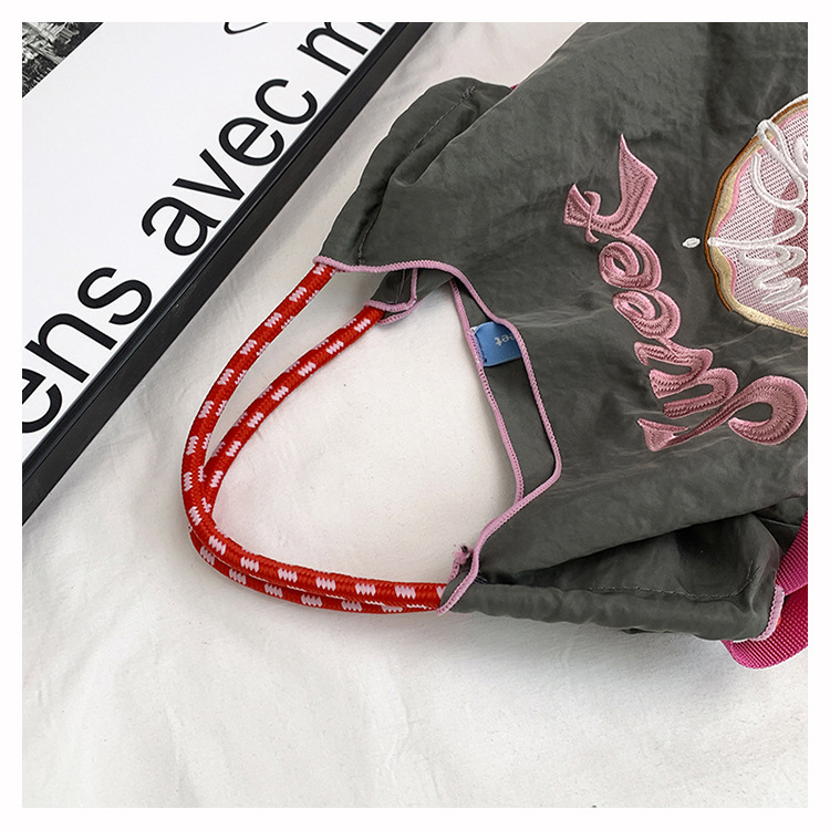 夏季新款日系刺绣labubu可爱单肩斜挎包托特包尼龙环保购物袋女包