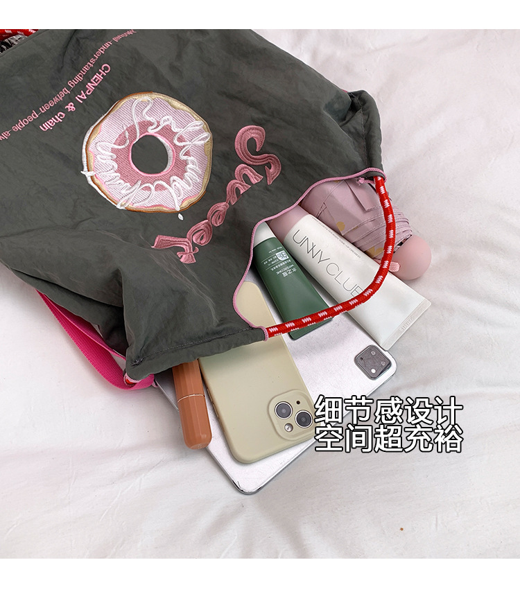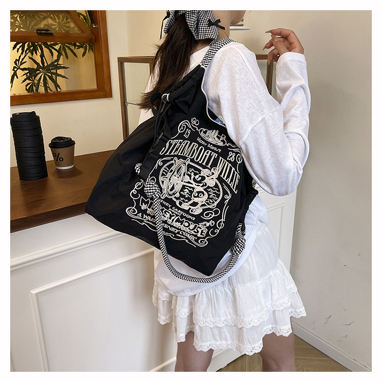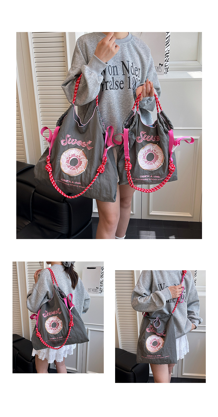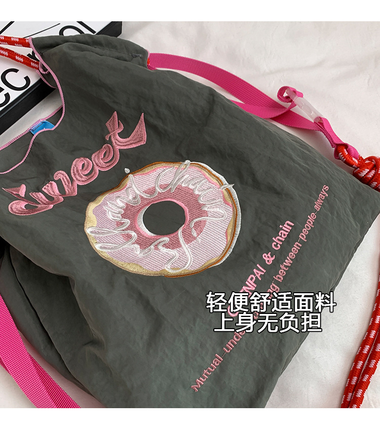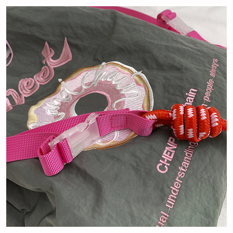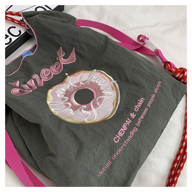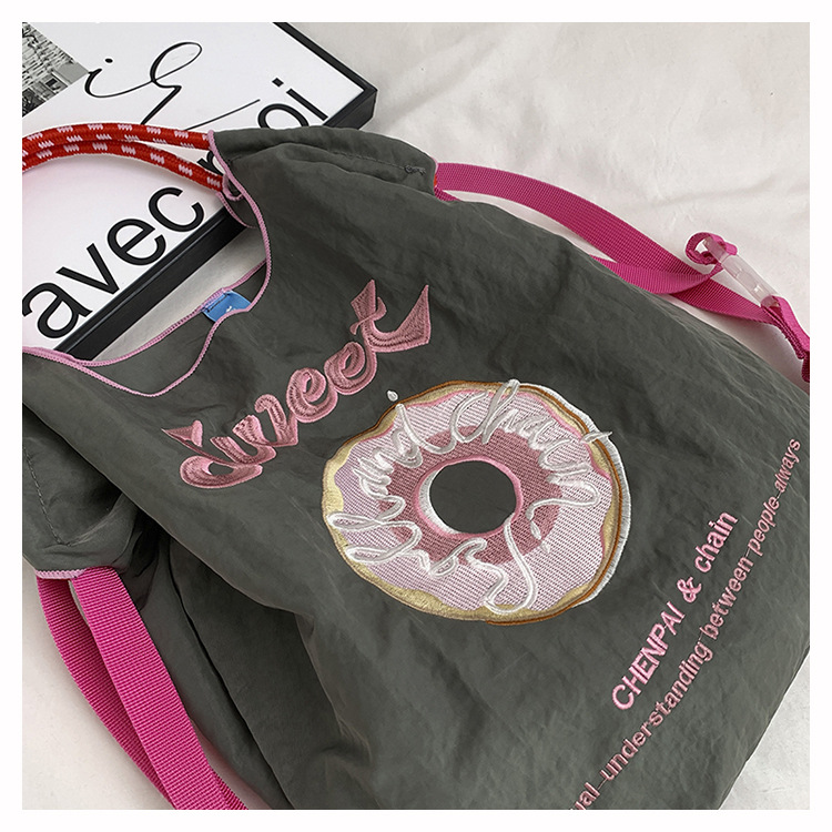 夏季新款日系刺绣labubu可爱单肩斜挎包托特包尼龙环保购物袋女包