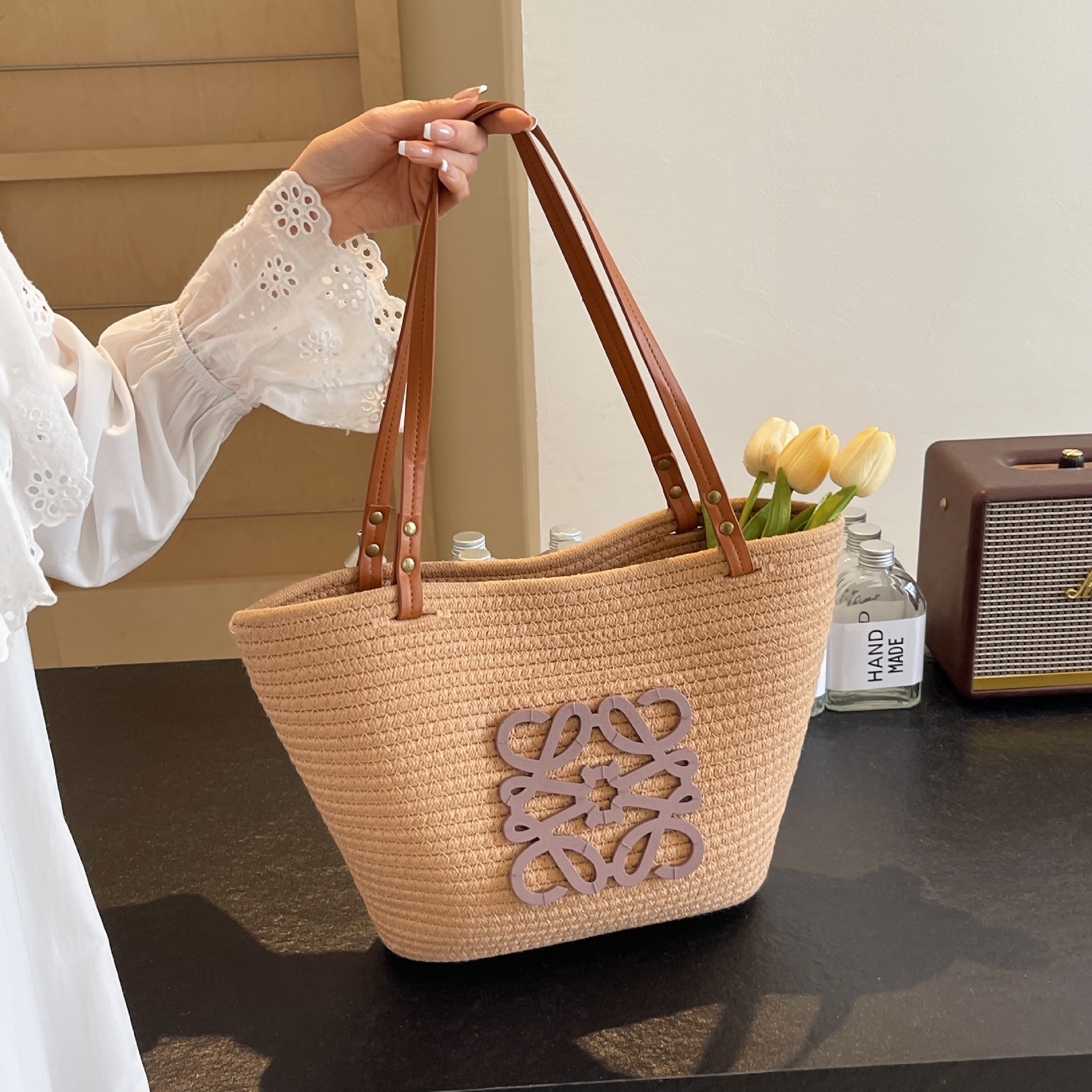 跨境罗家编织托特包大容量亚马逊草编菜篮子包沙滩高级通勤单肩包