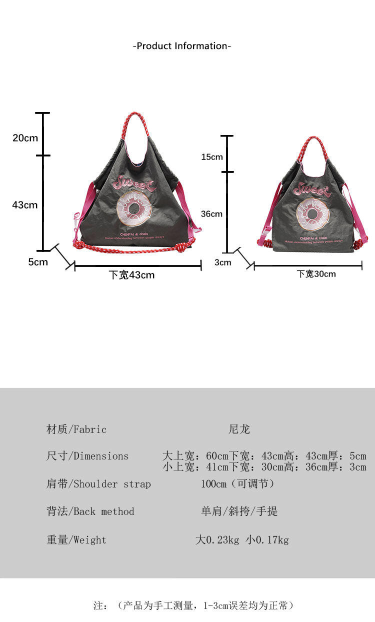 新款大号拉布布时尚百搭刺绣女包购物袋手拎包尼龙托特包单肩包