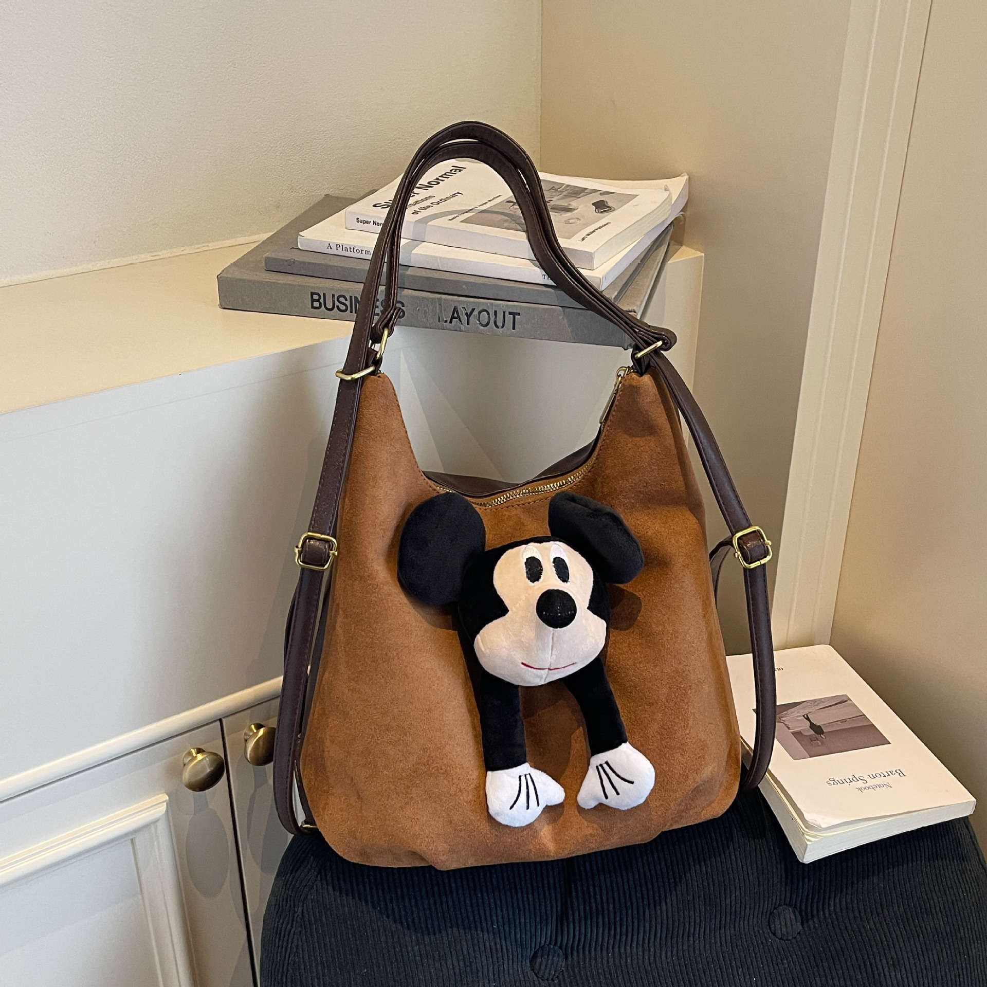 可爱外贸麂皮绒bags复古托特包休闲大容量美拉德通勤双肩多功能包