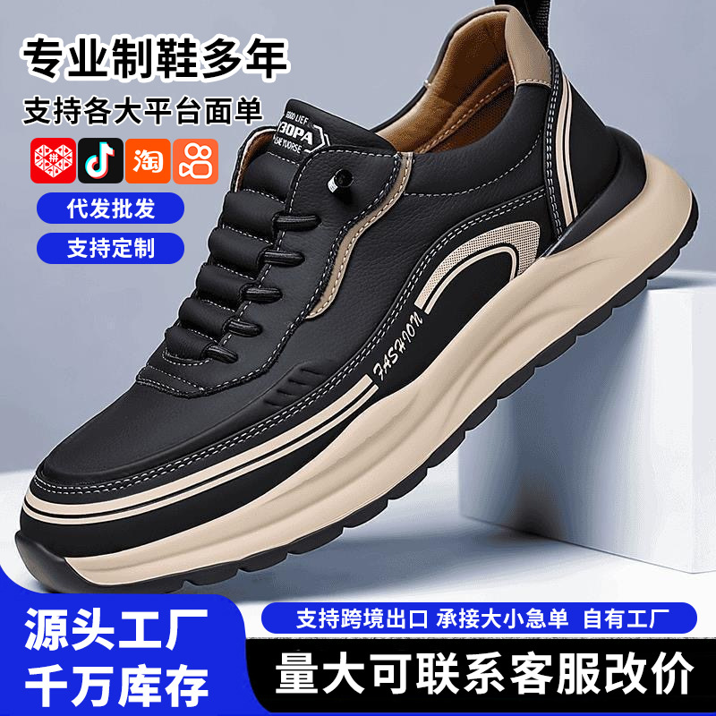 快手抖音同款秋季皮面透气厚底老爹鞋时尚百搭潮流男鞋运动小白鞋