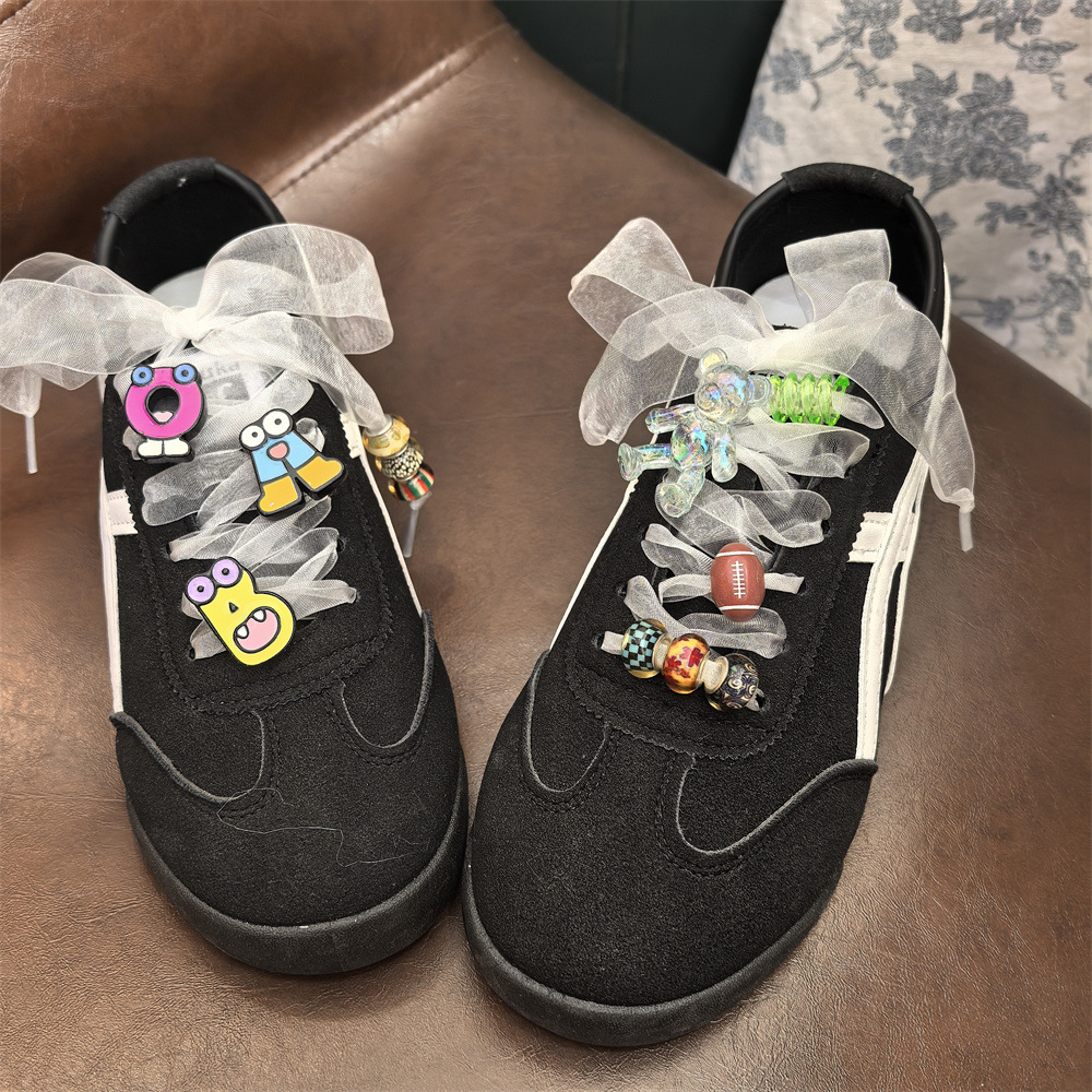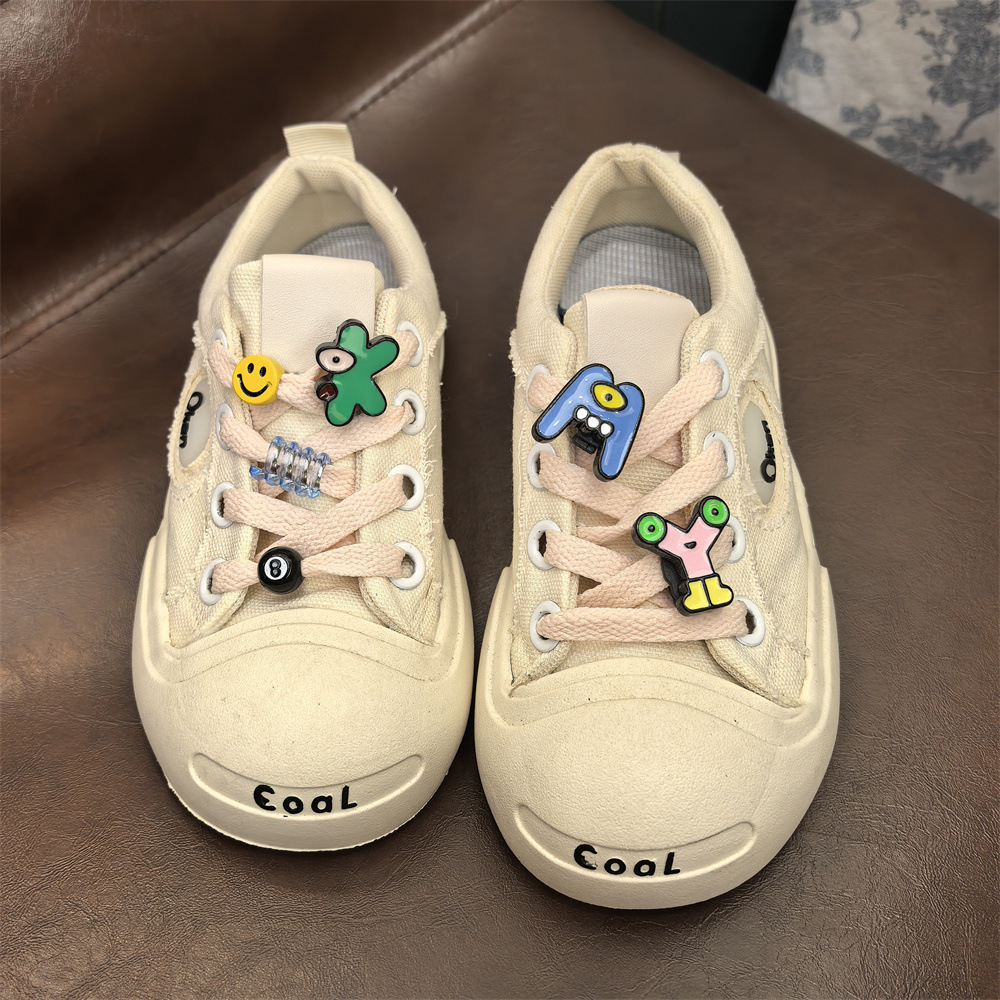 子供っぽくてかわいいアルファベットサッカービリヤードシューズバックル靴花スマイリーフェイスドーパミンキャンディーカラー子供靴ひも装飾アクセサリー