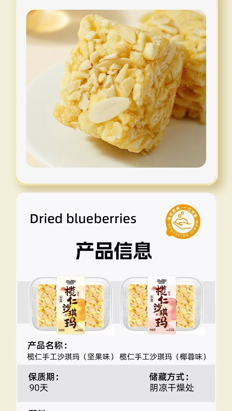 アグリ仁サシマ扁桃仁シャキーマ純卵黄ココナッツ蓉手作りシャキーマ間食卸売り
