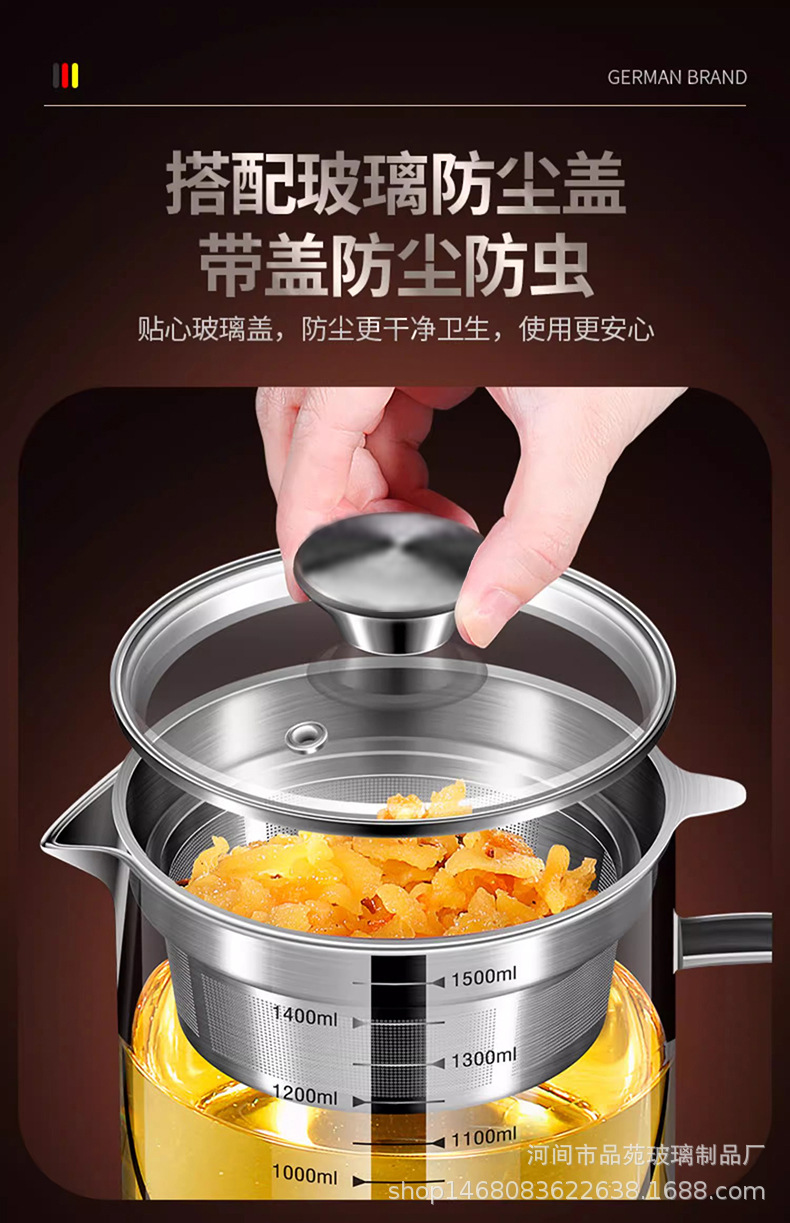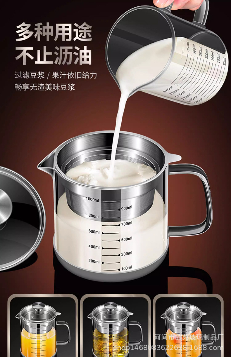家庭用オイルフィルターポット台所ガラスオイルポットフィルター油かす神器大容量オイルタンク深みフィルター