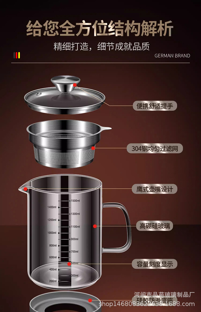 高ホウケイ酸ガラスティーポット増粘大容量煮沸花茶家庭用高温耐熱茶水分離ティーセット