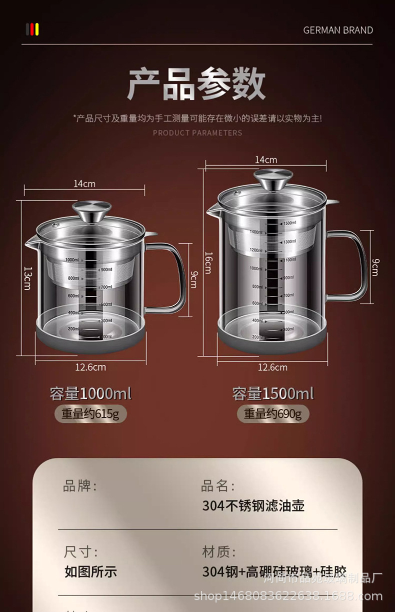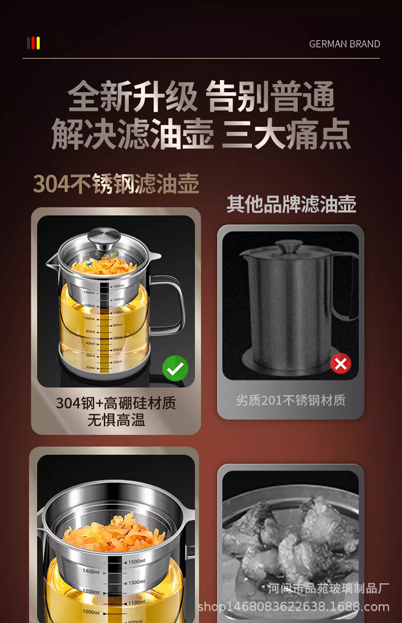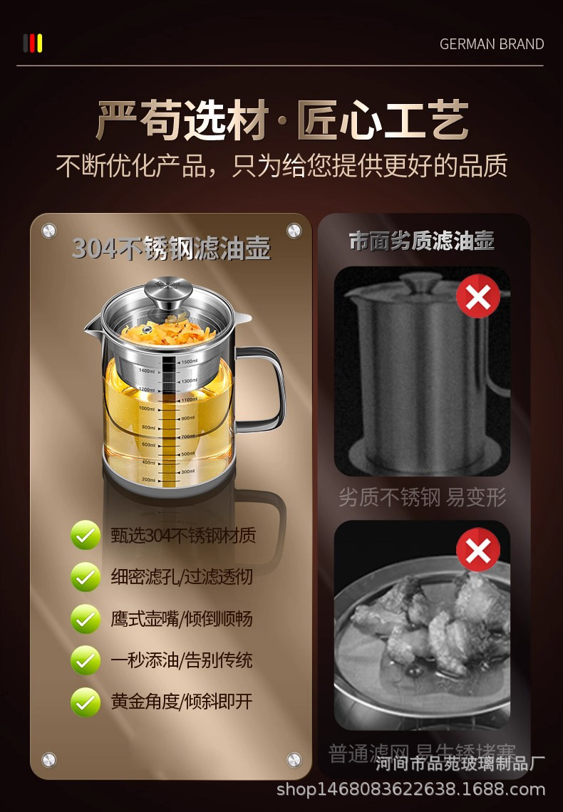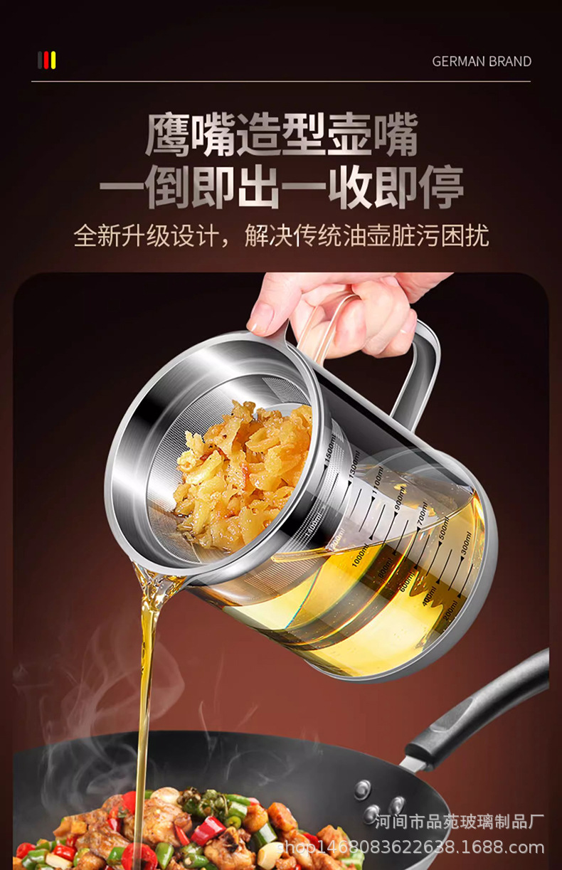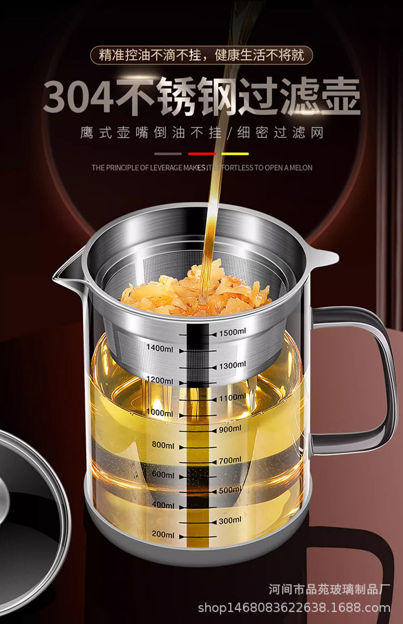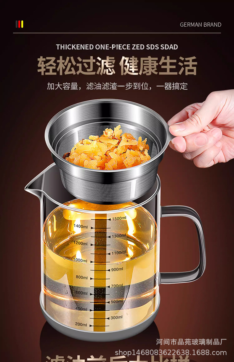 玻璃滤油壶家用储油罐加深过滤网防漏油瓶大容量滤油渣神器隔油壶