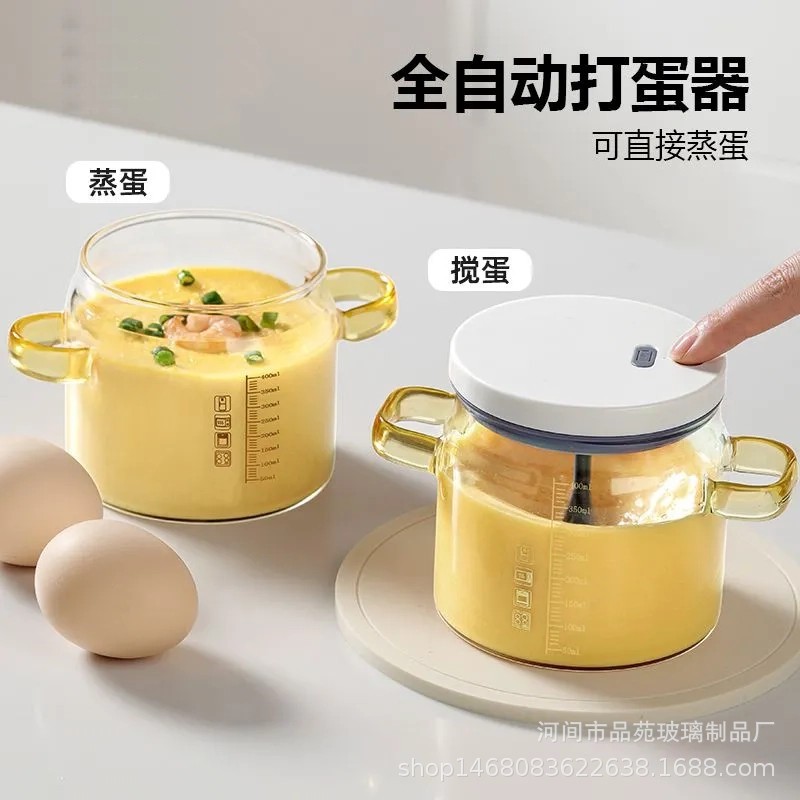 高温耐性蒸し卵カップルガラス電動エッグビーター混合スティックスケール付き大容量自動混合カップ