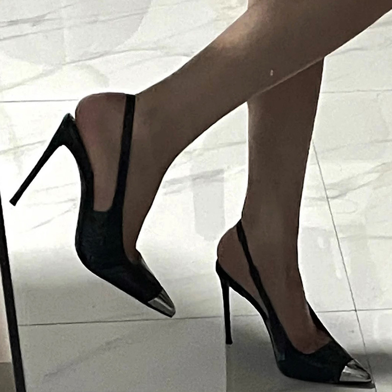 網糸ハイヒール女性2025年新型夏の小衆名媛気質黒色レースの細い靴女性