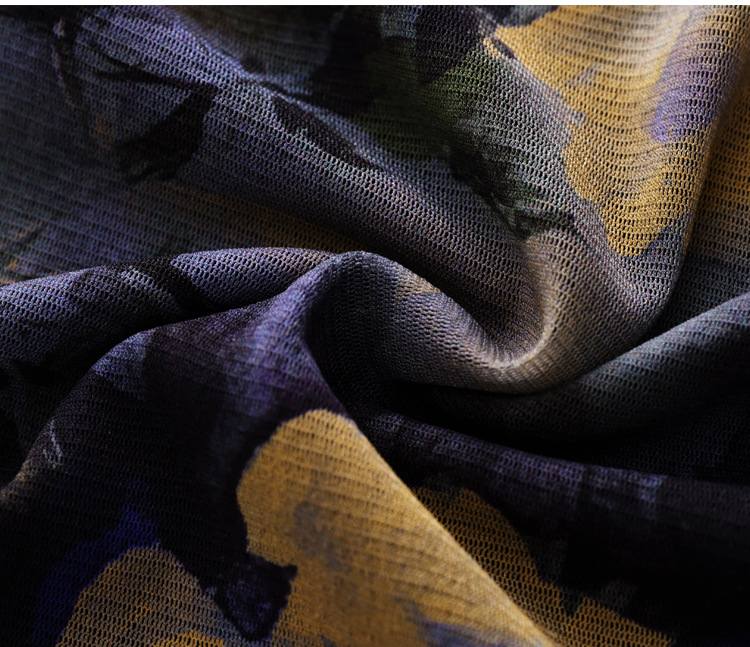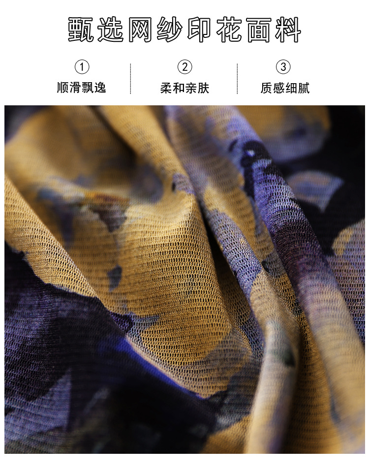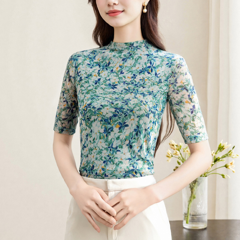 半高领打底衫女春秋冬新款时尚印花网纱上衣妈妈别致漂亮长袖t恤