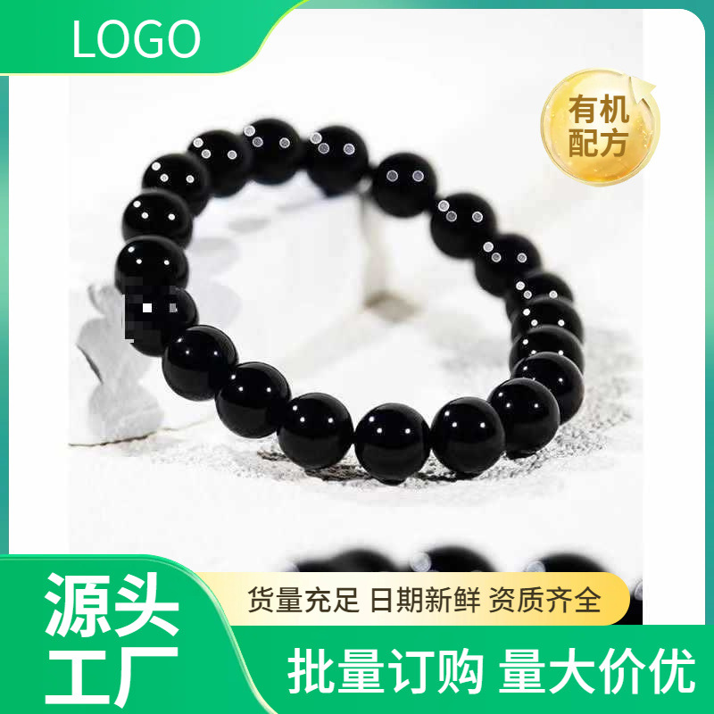 コレクターズグレードのミネラルコア黒曜石ブレスレット、両親、男性、女性、カップル向け、ピュアブラック、ユニセックス