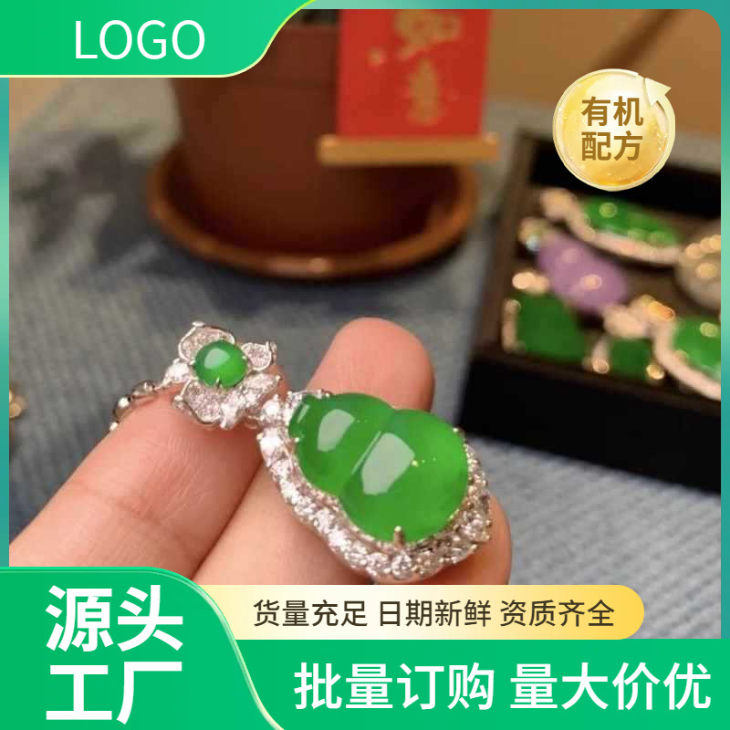 ハイアイスホワイトアイス翡翠ひょうたんペンダントゴールド象嵌ビルマ天然翡翠フラワージェイドペンダント女性用