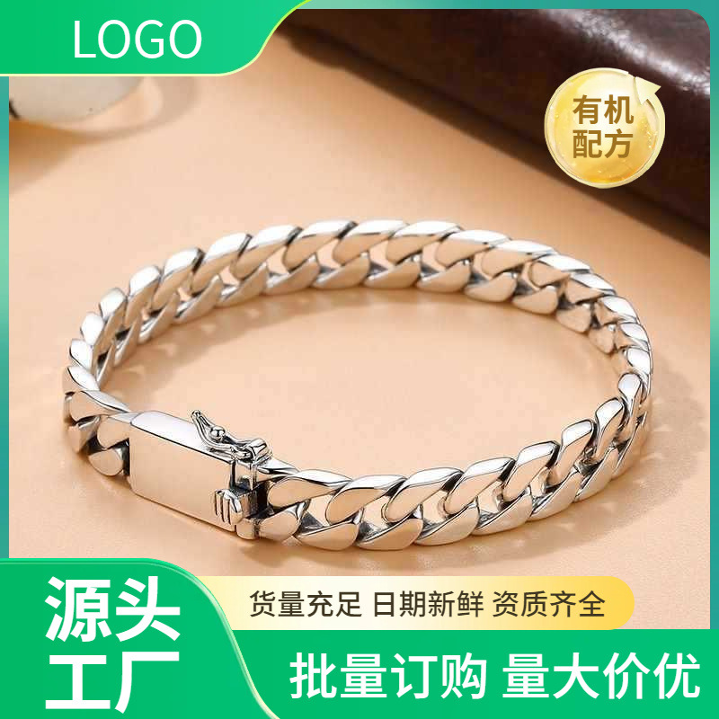 スターリングシルバーシンプルな光のシルバーチェーン韓国スタイルのカップル彫刻ブレスレットタイシルバーメンズキューバチェーンパーソナライズされたギフト