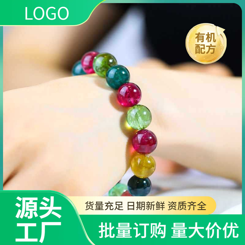 ブラジルトルマリンクリスタルブレスレット女性用、古い素材のキャンディー透明レインボートルマリンブレスレット、女性用ウォンフストーンブレスレット