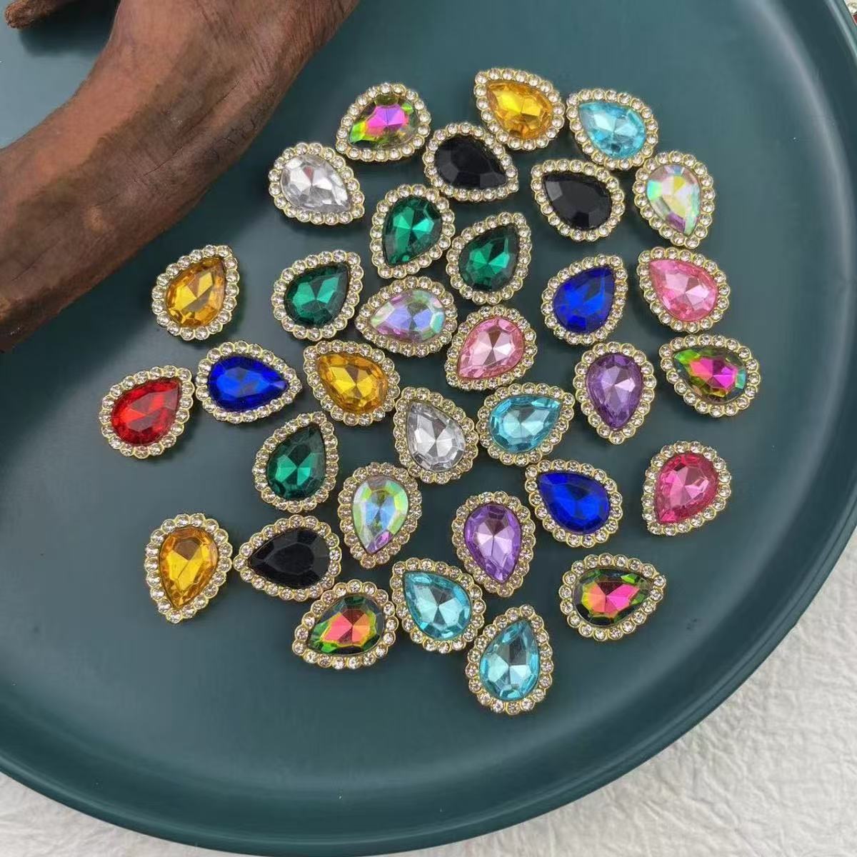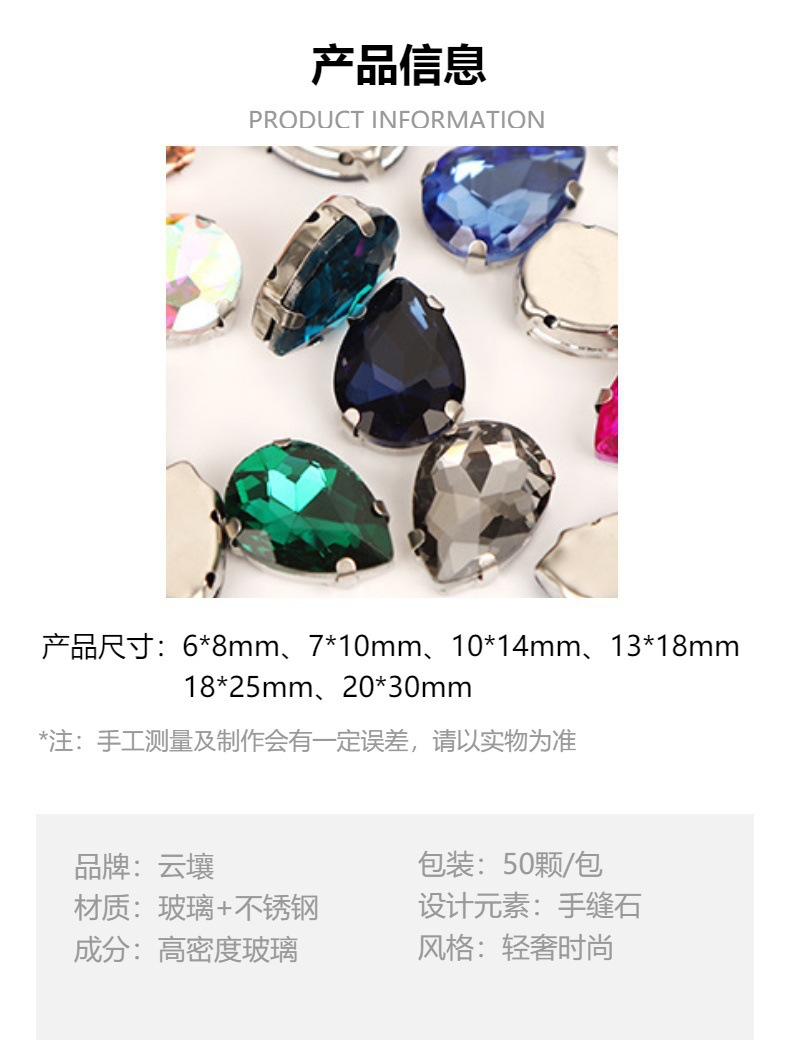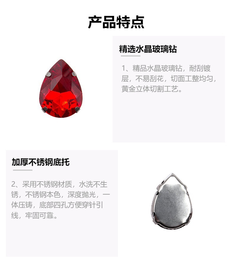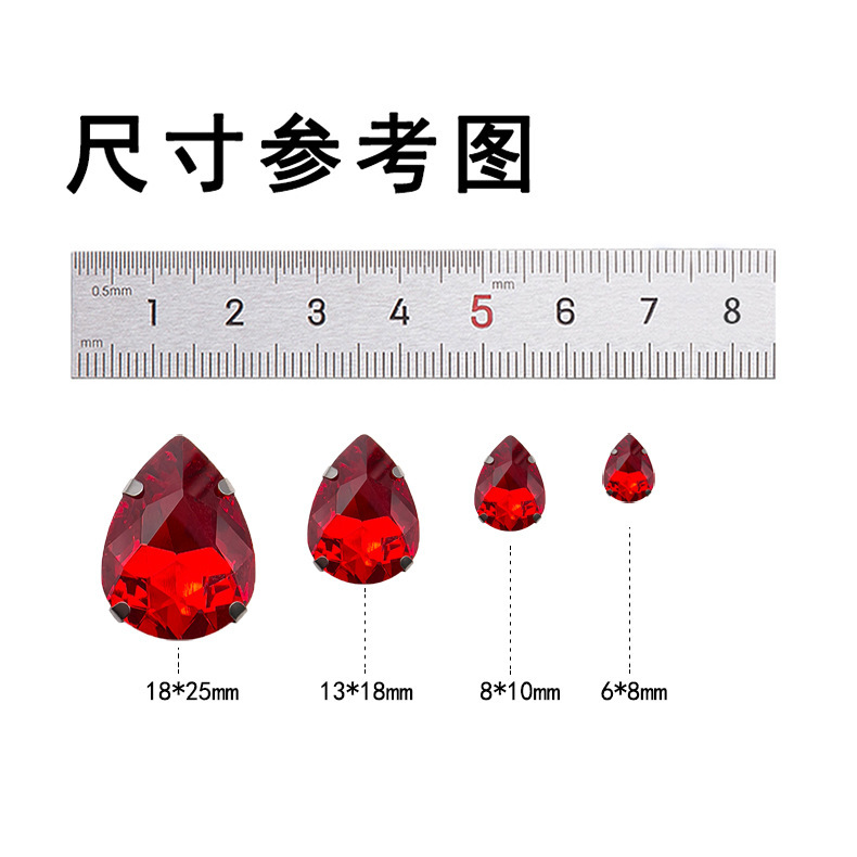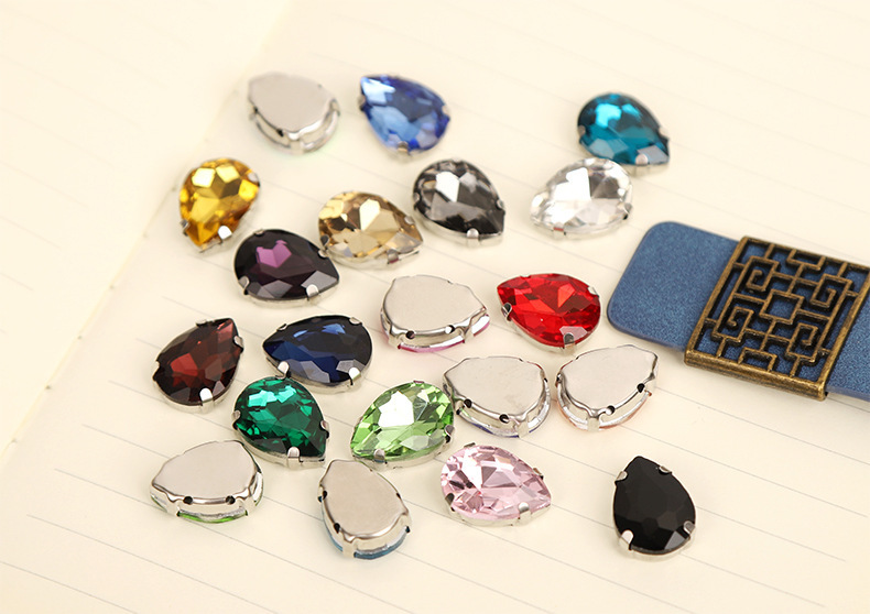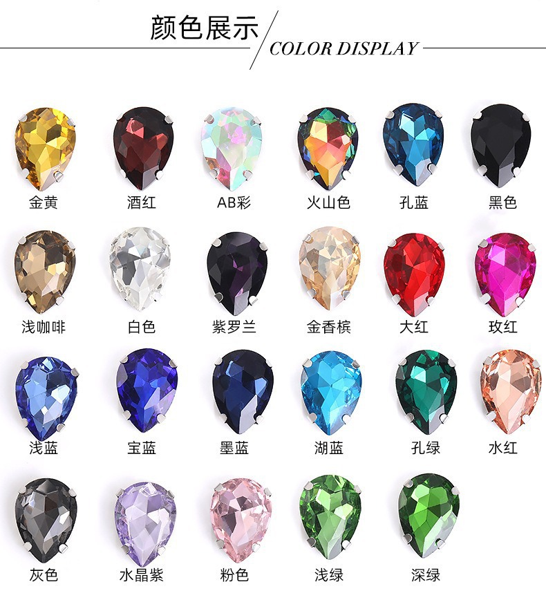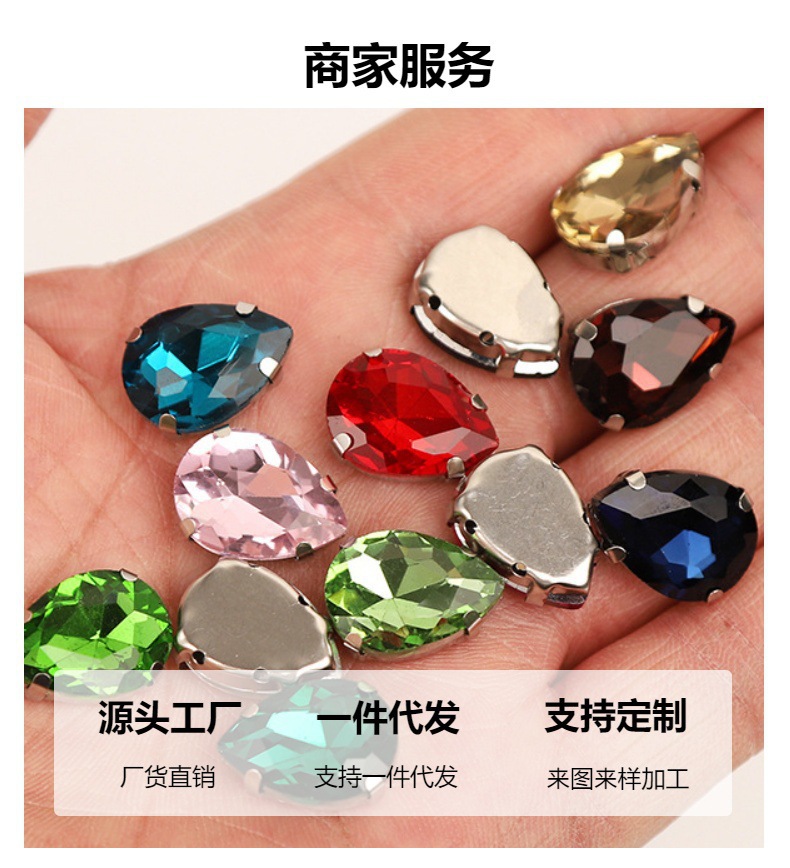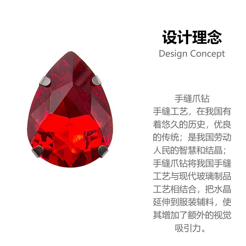 水滴尖底异形手缝爪钻水晶玻璃钻diy婚纱服装配件水滴四角爪钻