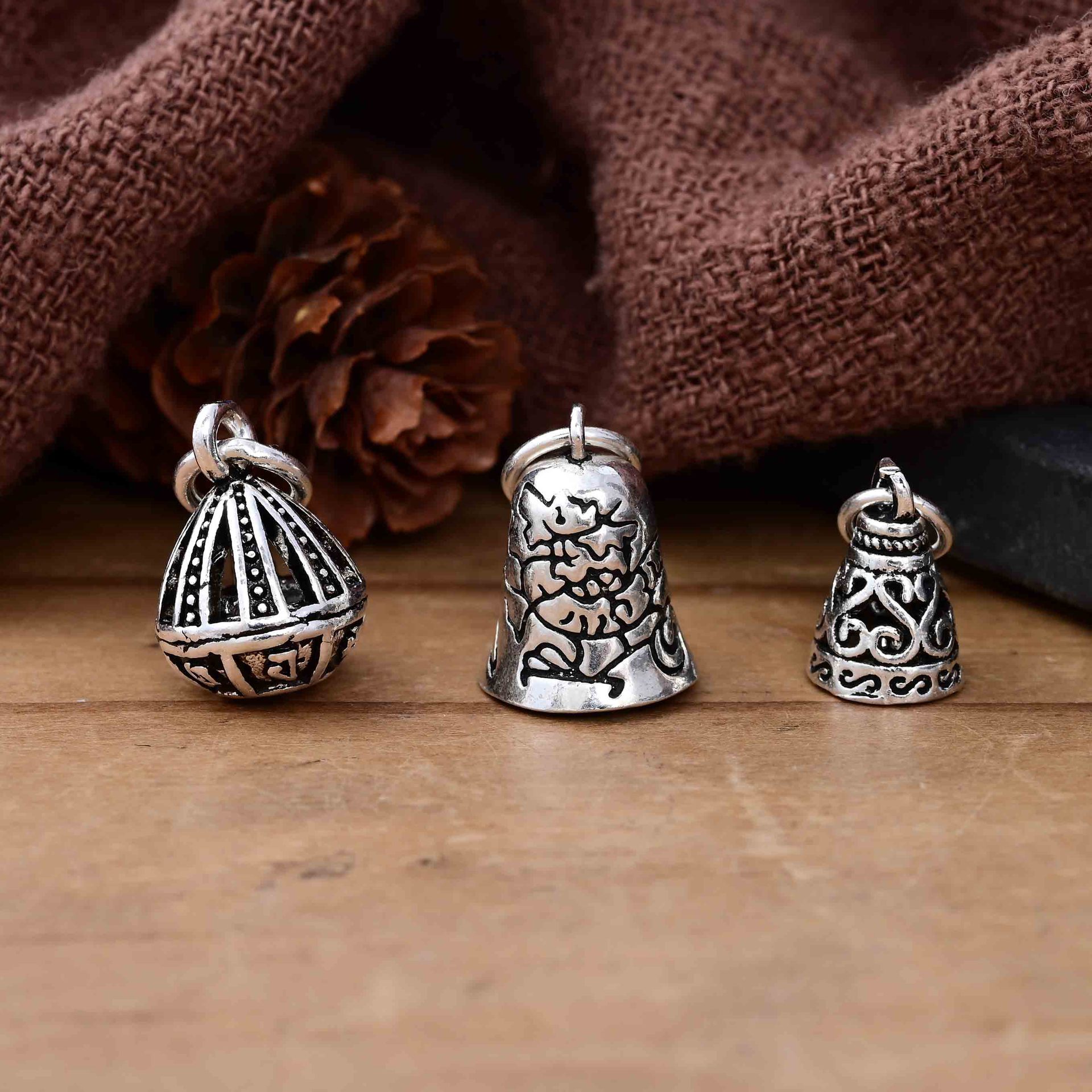 S925純銀透かし六字龍紋鈴ストラップレトロ泰銀会響diy手串水晶アクセサリー部品