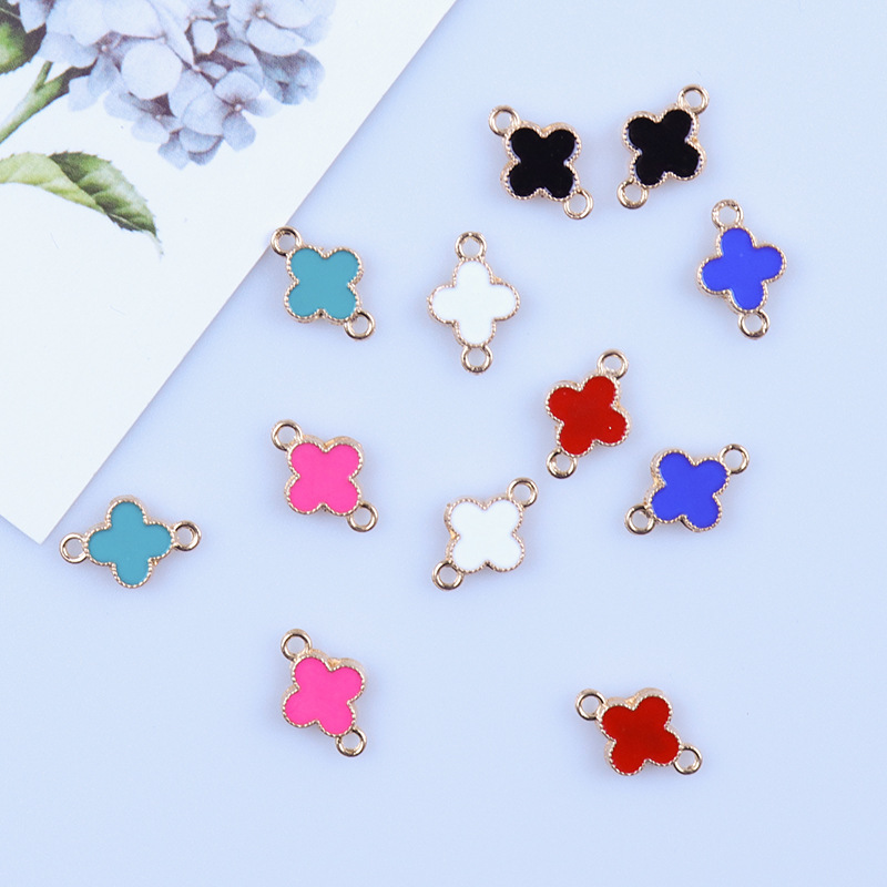 韓国風四つ葉のクローバーDIYダブルペンダント合金オイルドロップアクセサリーペンダント片面イヤリングブレスレット手編み小物ペンダント