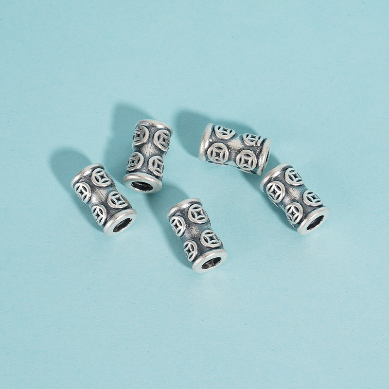 银之钱币铜钱隔珠串珠纯银999桶珠diy小配件手工手链项链材料批发
