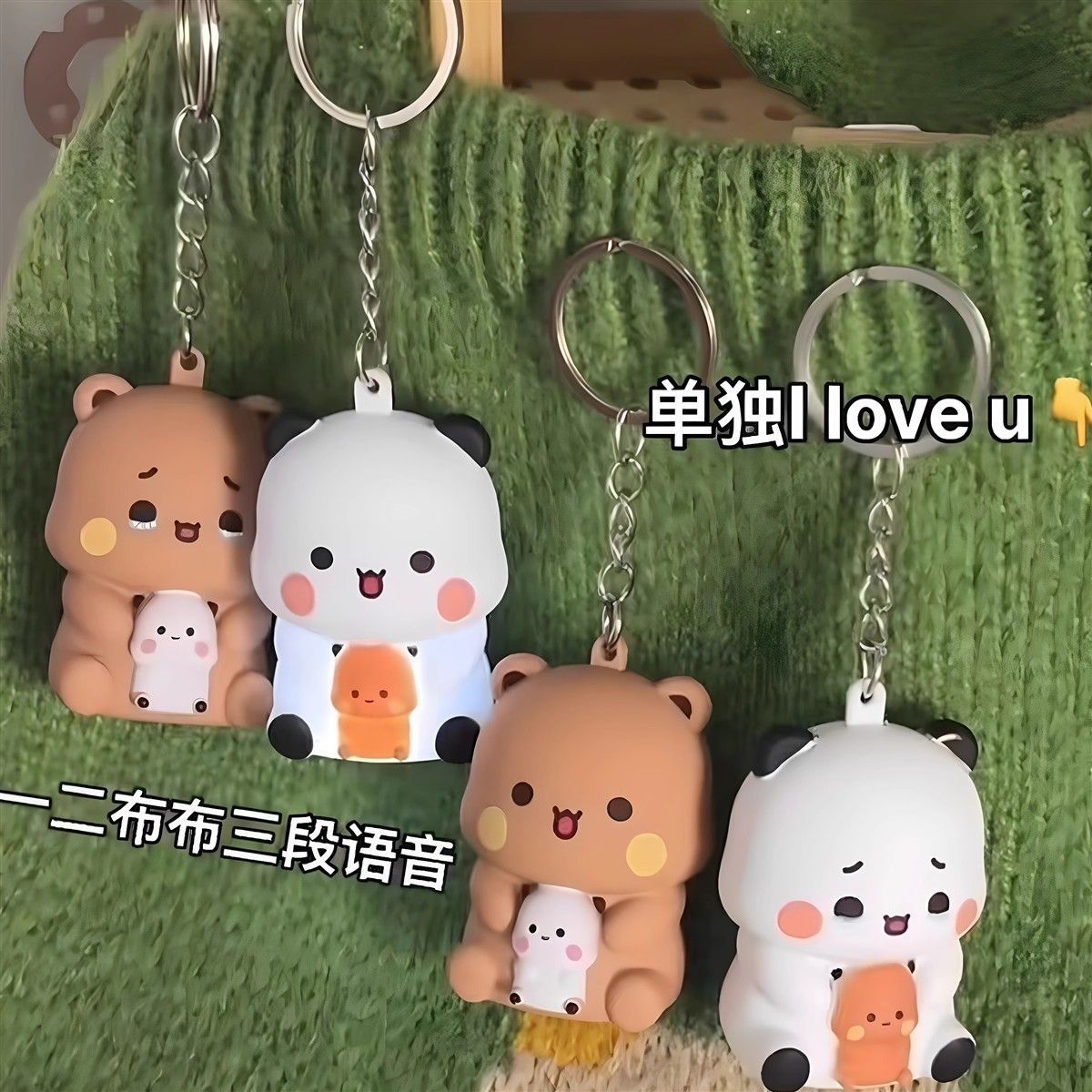 一二布布iloveyou语音挂件发光熊猫钥匙扣情侣礼物表白潮玩钥匙扣