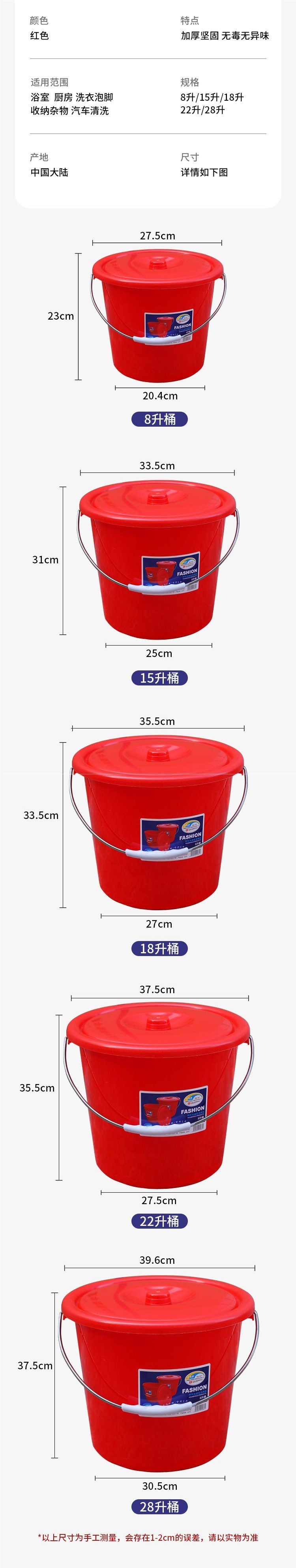 珠江塑料水桶加厚带盖圆桶储水红桶婚庆喜桶熟胶桶宿舍家用手提桶