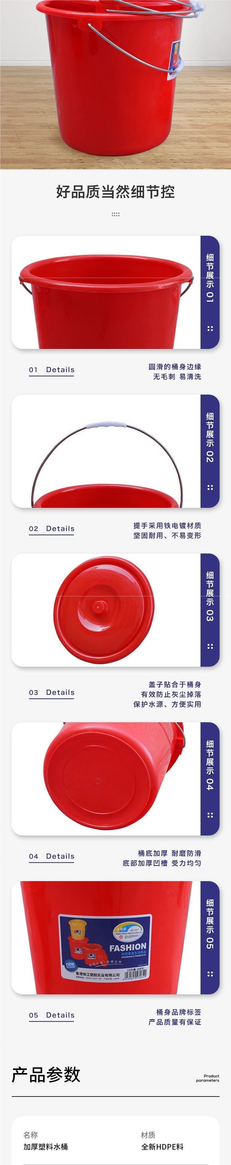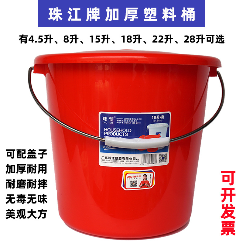 珠江ブランド 厚型蓋付き赤色携帯用プラスチック製水貯蔵バケツ 強化水桶 大型洗車バケツ 入浴・洗濯バケツ