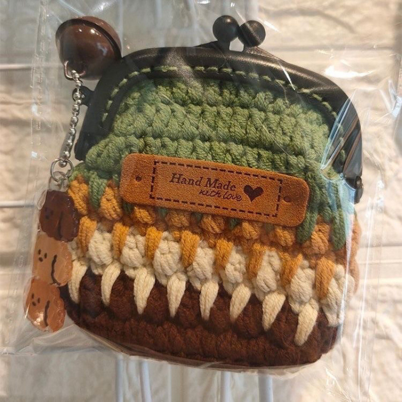 レトロなステッチコントラストカラーバッグ織りDIY素材バッグウールかぎ針編みニッチ小銭入れ親友へのギフトとして