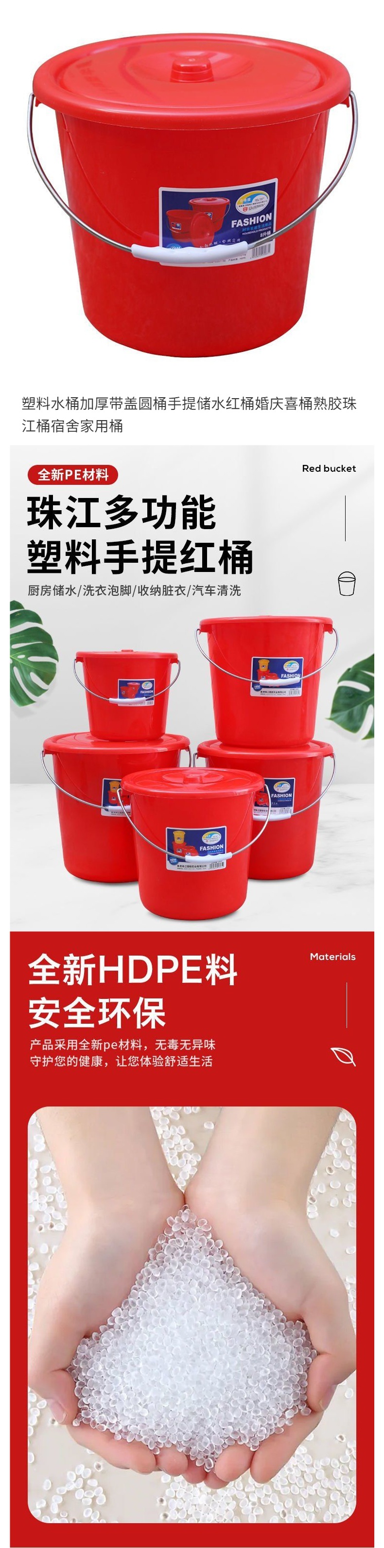 送料無料、珠江強化バケツ、蓋付き厚みのある家庭用ポータブル水貯蔵バケツ、赤い調理済みゴム製バスバケツの流通と配送