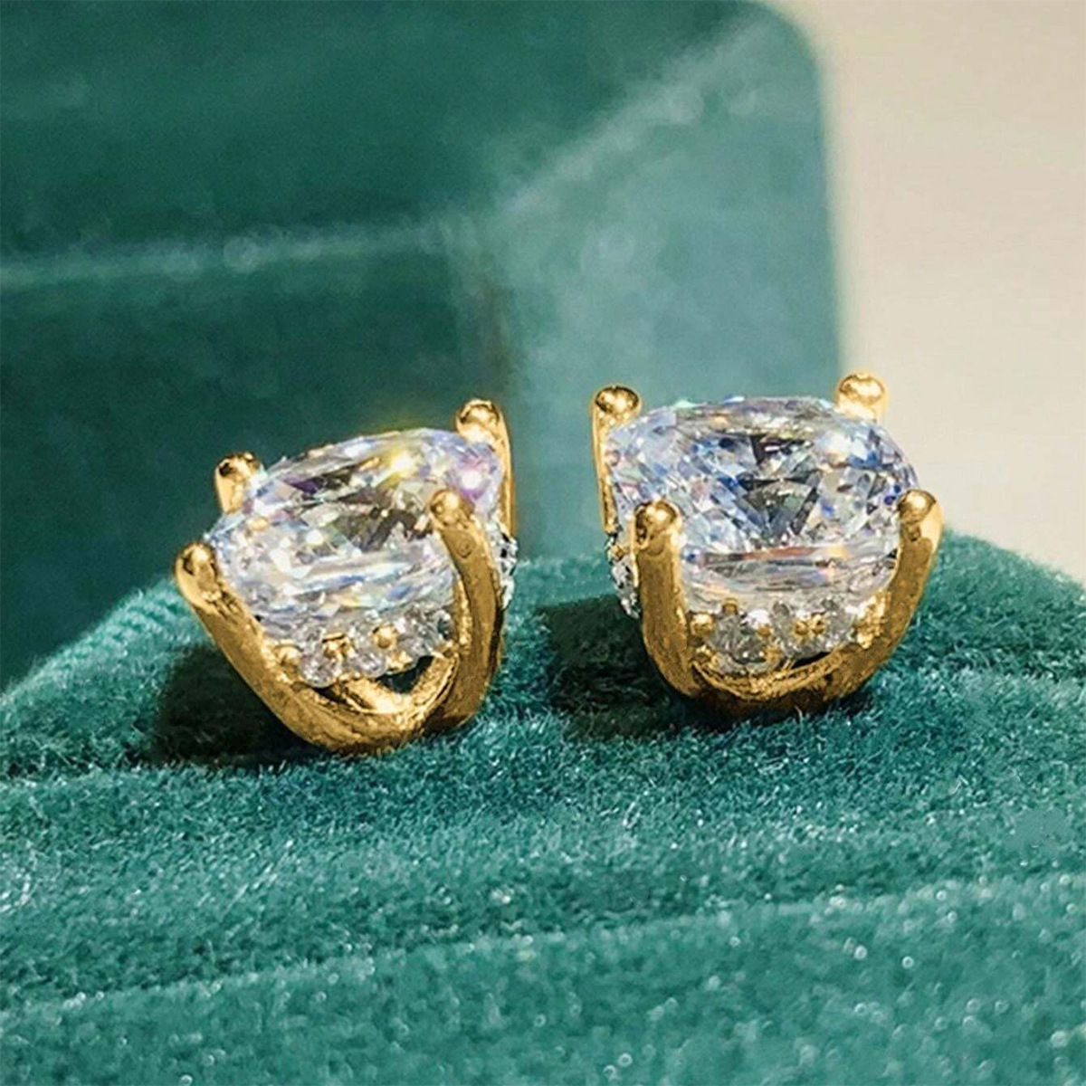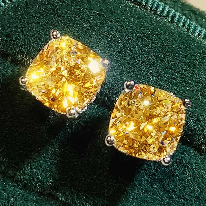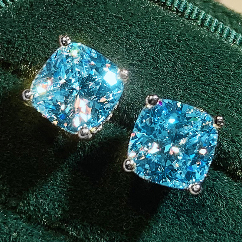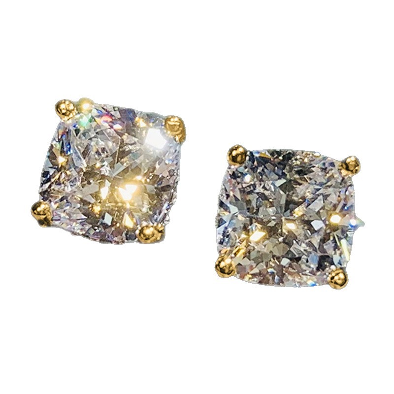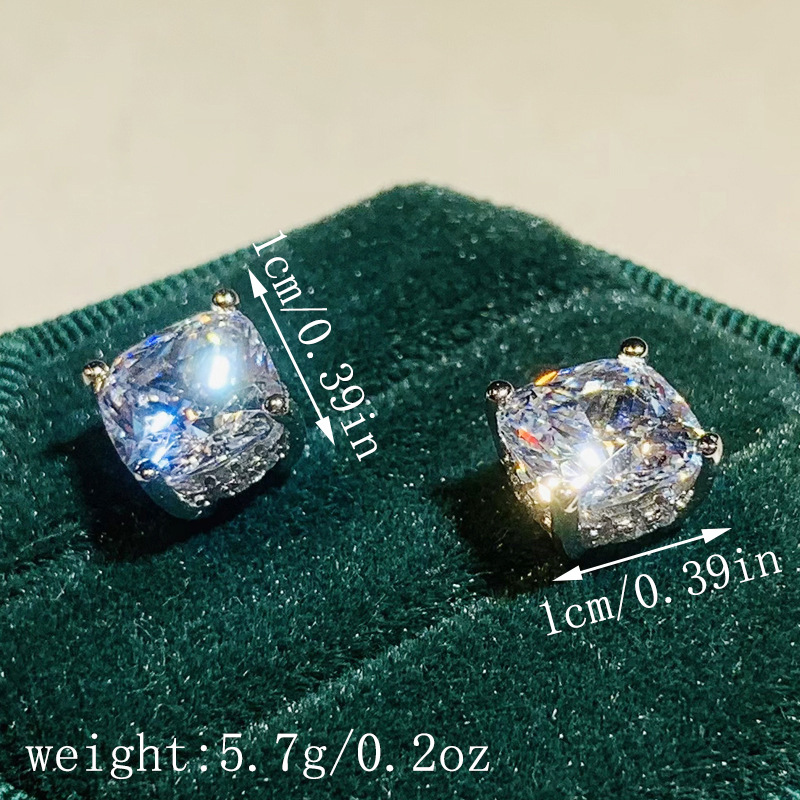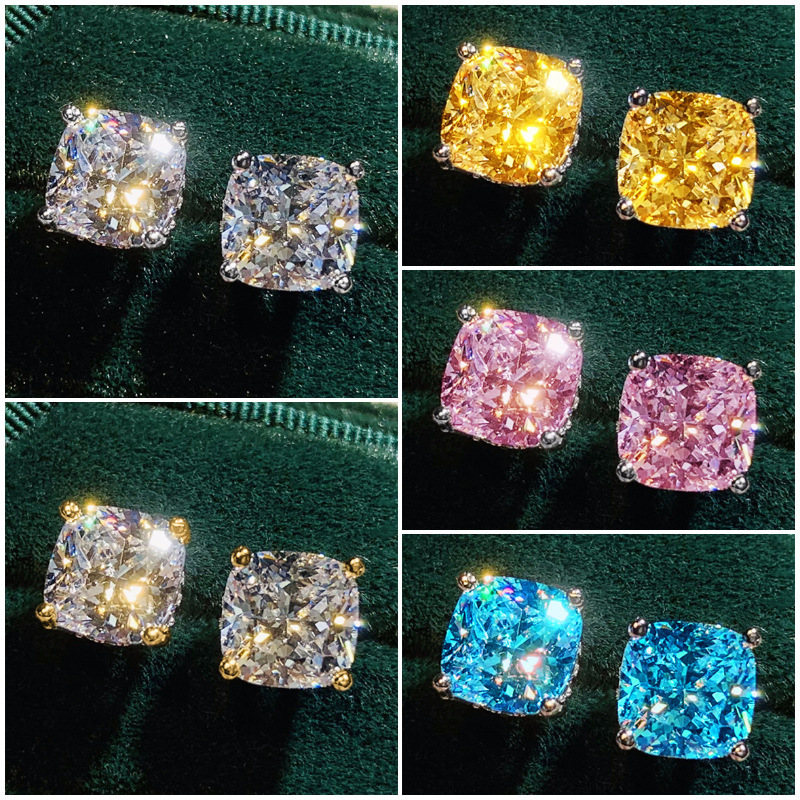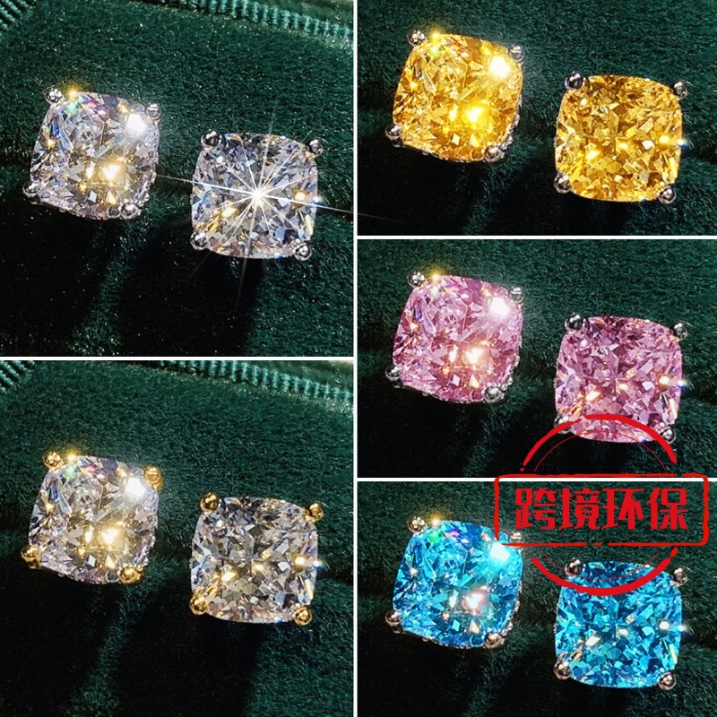 跨境热销耳饰2.5克拉四爪方钻镶锆石耳钉 日常配饰百搭多色耳饰女