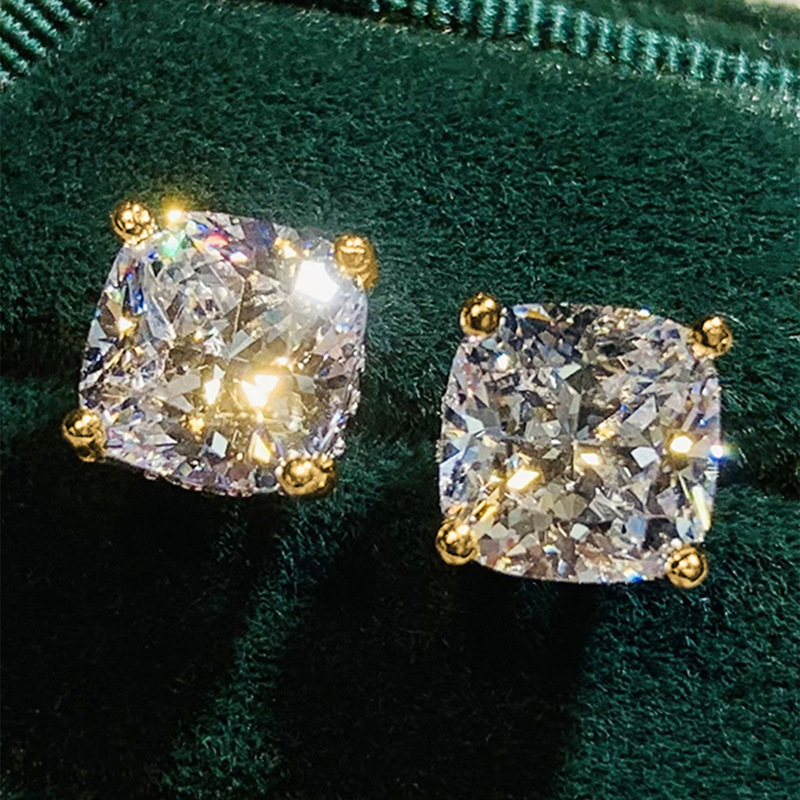 国境を越えた売れ筋イヤリング 2.5 カラットの 4 爪スクエア ダイヤモンド イヤリング シミュレーション ホワイト ダイヤモンド デイリー多用途イヤリング ライト ラグジュアリー リアル ダイヤモンド