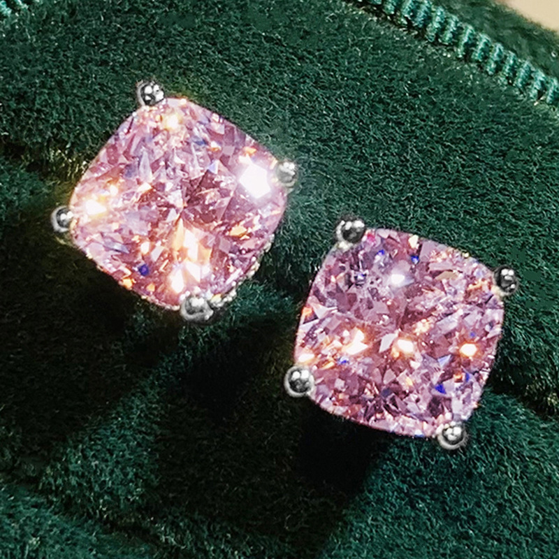 轻奢欧美仿真粉色碧玺名媛风耳钉女 气质公主方锆石耳环饰品批发