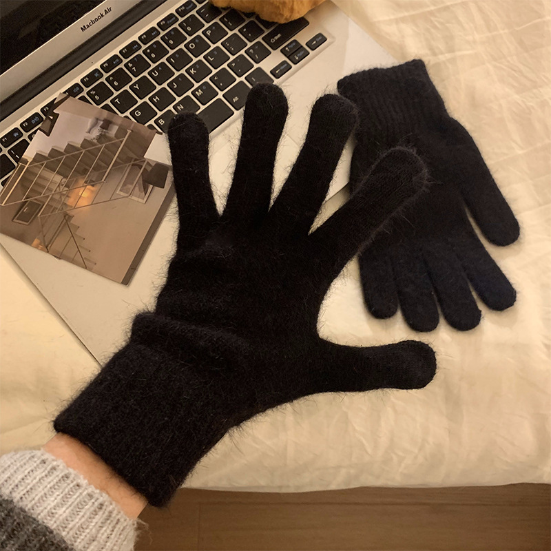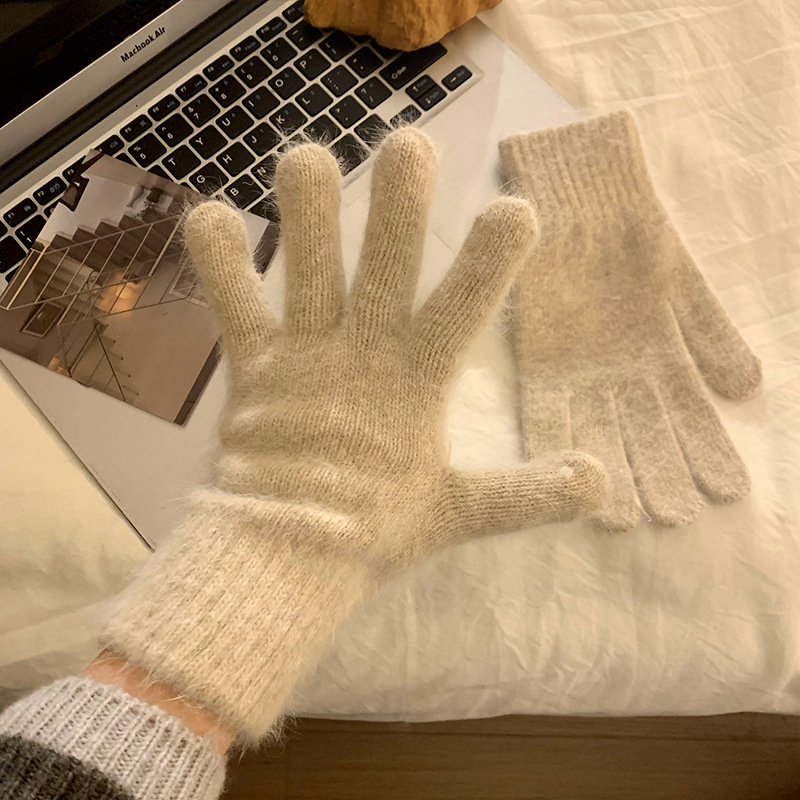 毛の縁の手袋の女性の冬の2023新型の韓国版は厚い保温の毛糸のメリヤスの指の手袋を厚くしてタッチパネルの潮に触れることができます。