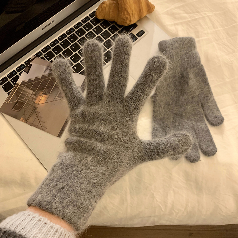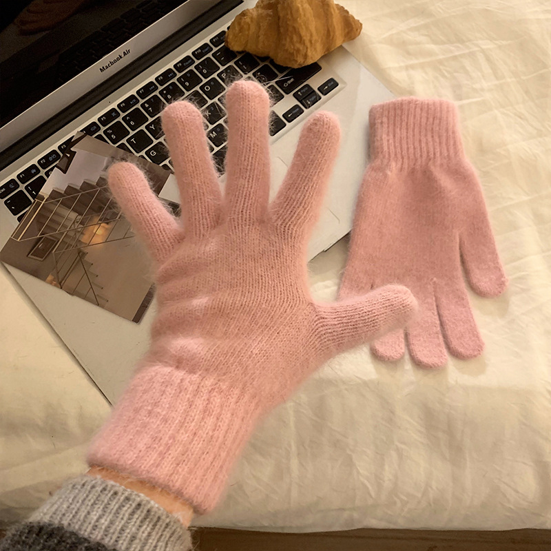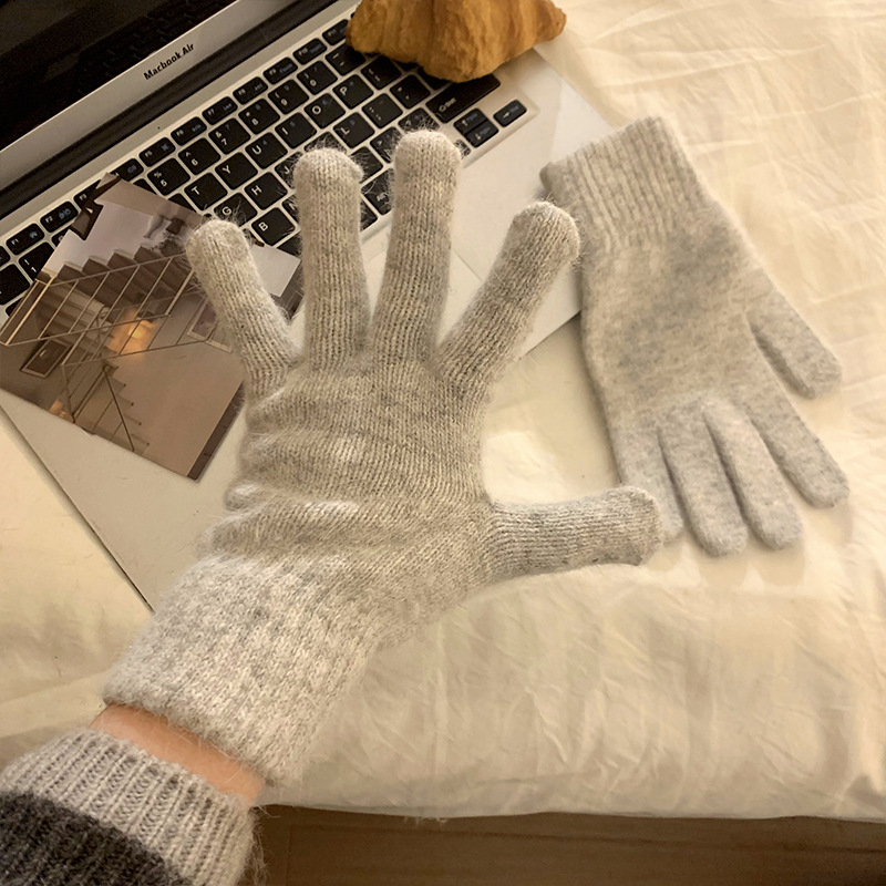 新型冬の純色ニット手袋男女保温タッチパネル毛糸五本指防寒韓国版女性