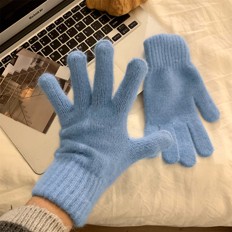 多巴胺彩色保暖毛线手套女秋冬季新款针织可触屏冬天骑行五指防寒