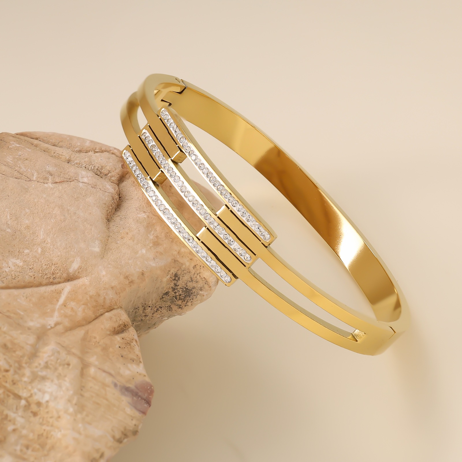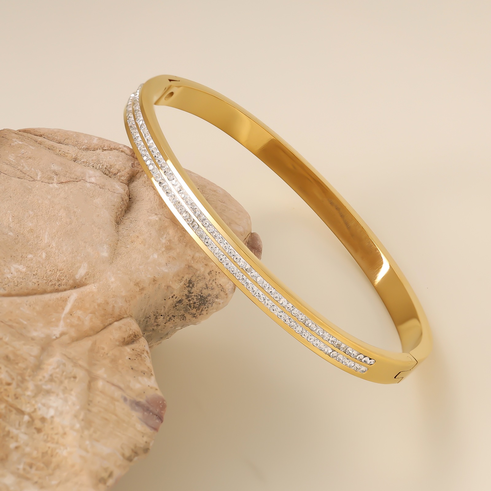钛钢手镯真金电镀不掉色高级感镶钻轻奢不锈钢手镯卡扣式百搭手镯
