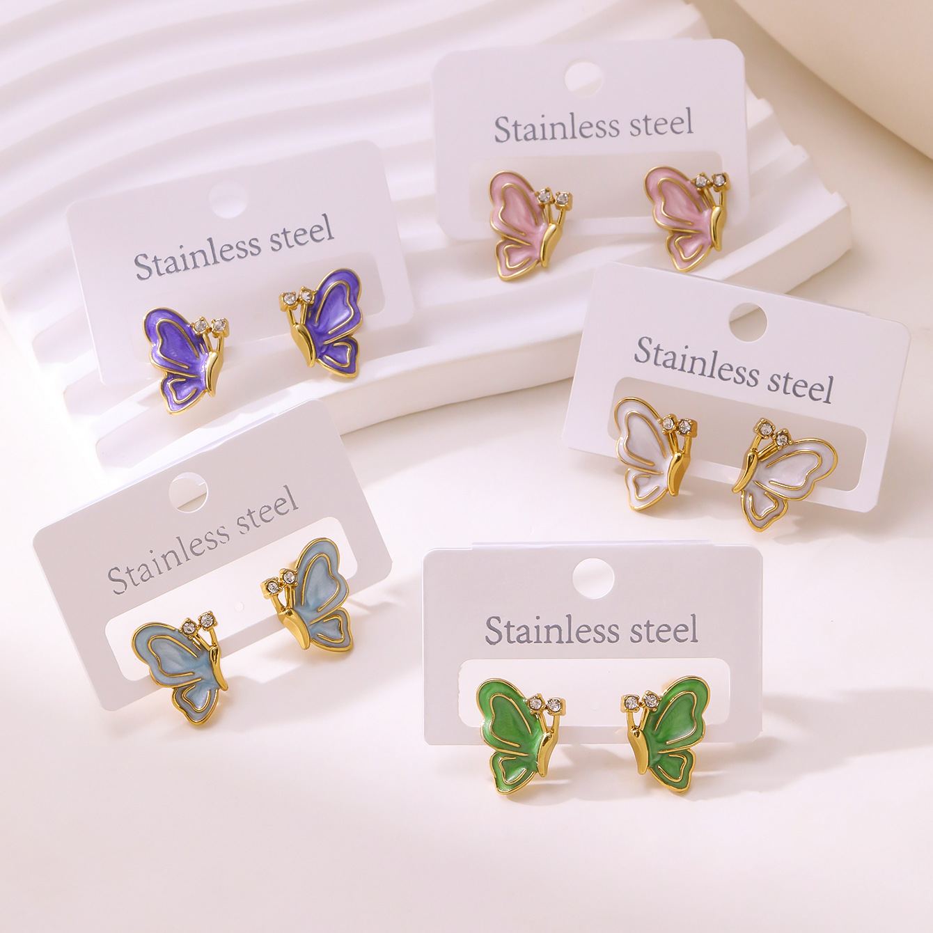 跨境热销滴油镶钻蝴蝶铸造耳钉时尚百搭轻奢耳环不掉色高级感耳饰