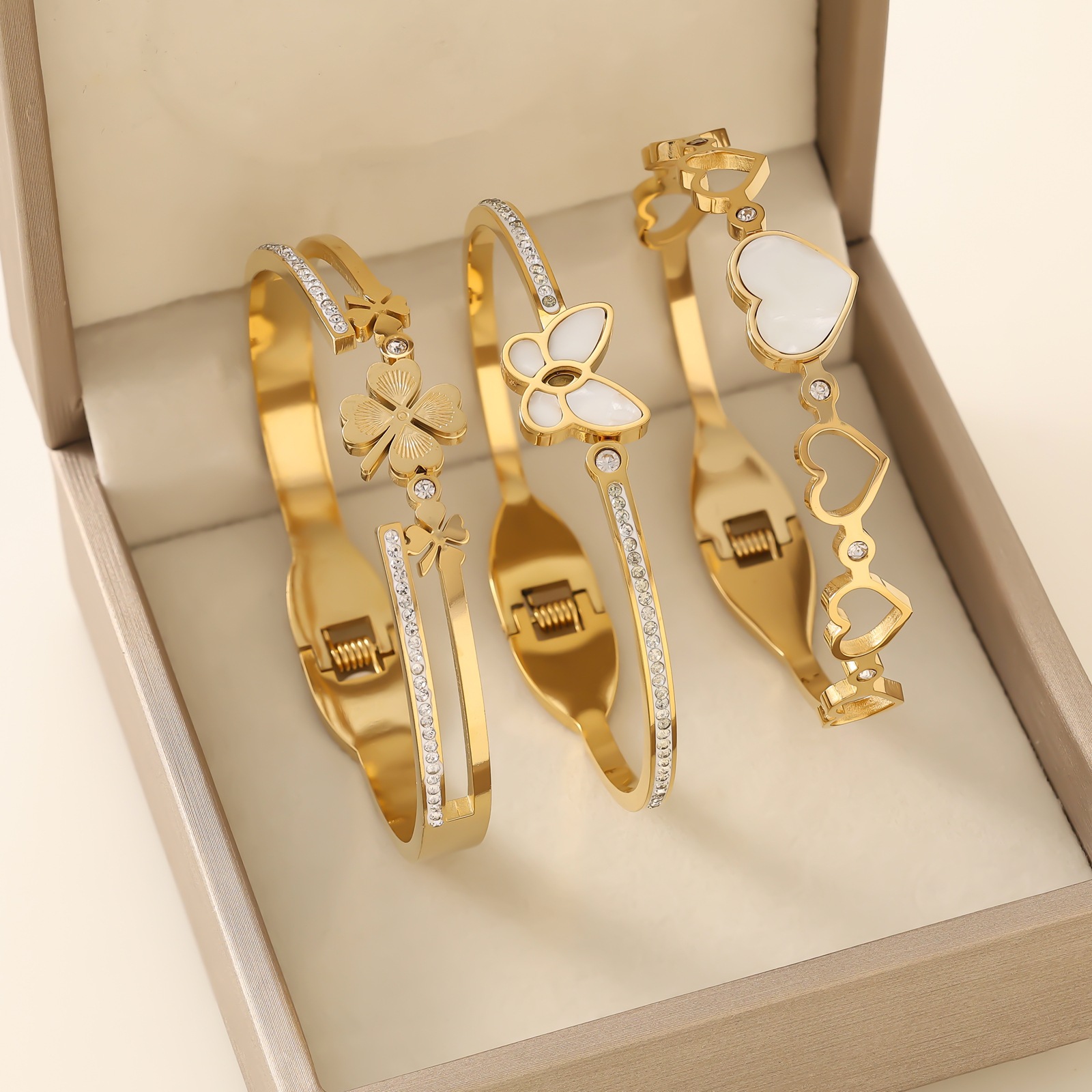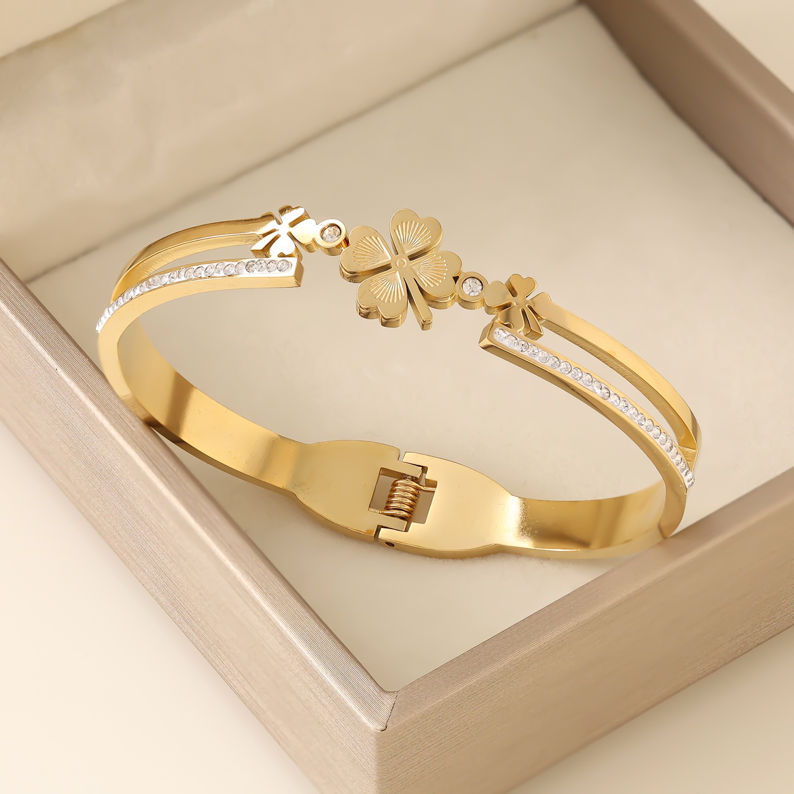 希音热卖钛钢手镯女时尚镶钻四叶草开口手环轻奢高级感不掉色批发