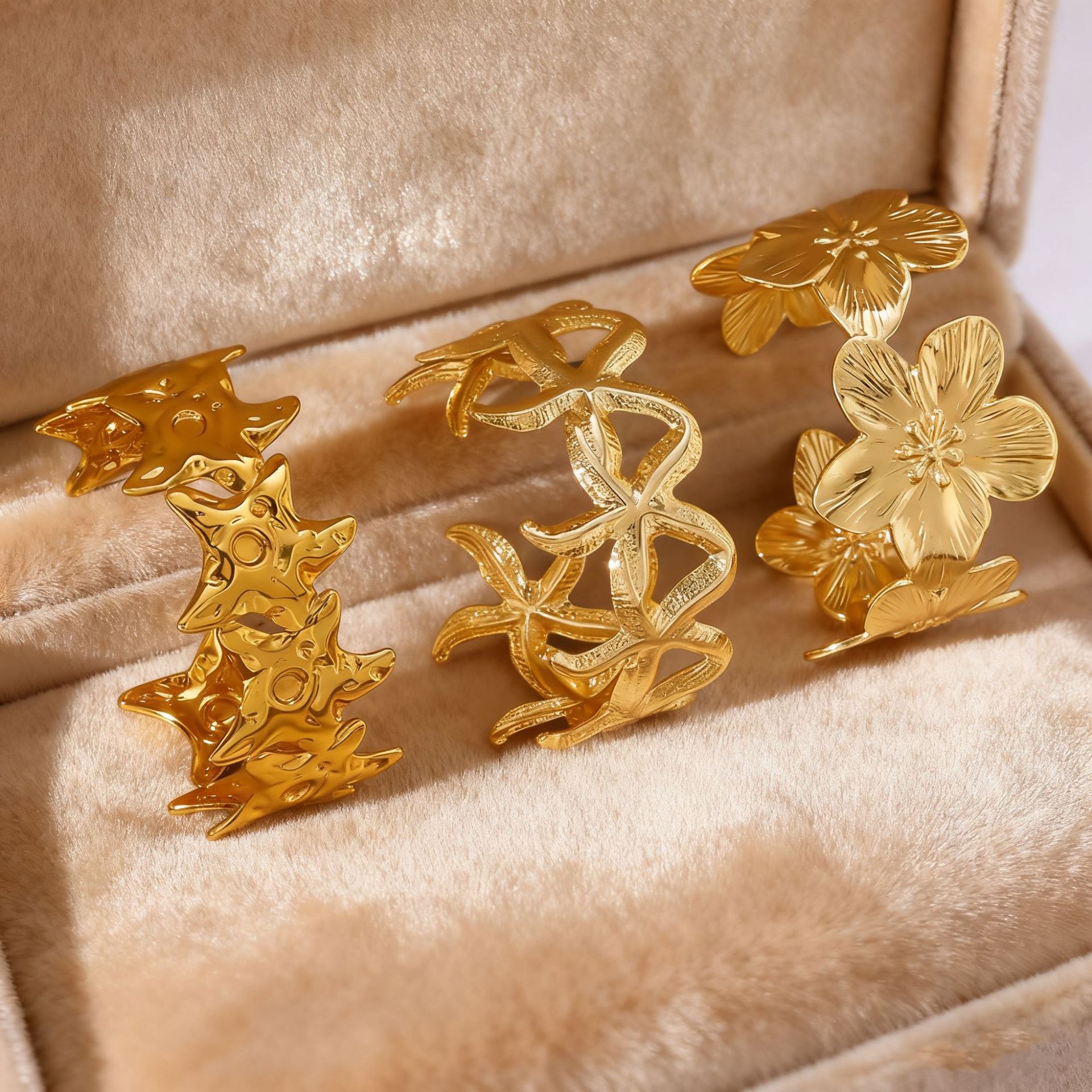 跨境花朵扇贝不规则304不锈钢开口手镯女不掉色宽面条纹油压手饰