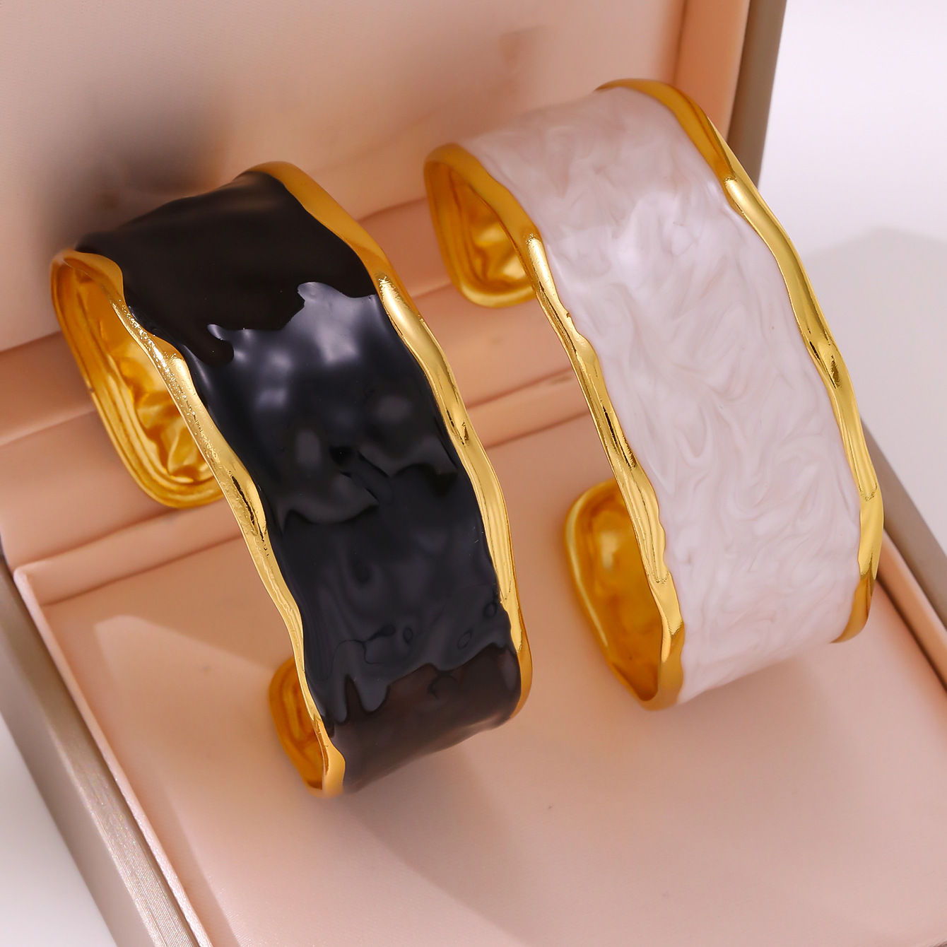 新款经典简约黑白滴釉C形开口手镯女不掉色时尚法式复古手环批发