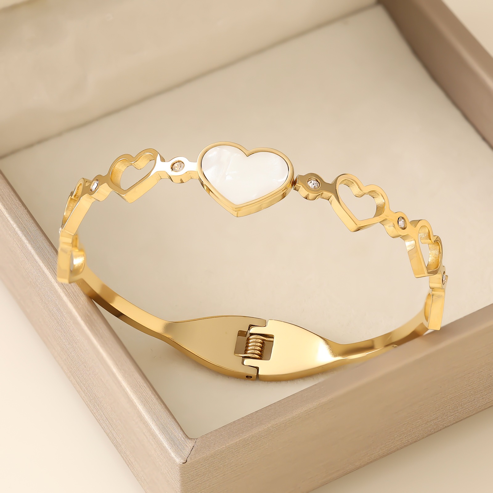 クロスボーダー18K金メッキ馬鞭チェーンチタン鋼ホワイトシェルハートブレスレット レトロライトラグジュアリーニッチスネークボーンチェーンシンプルジュエリー