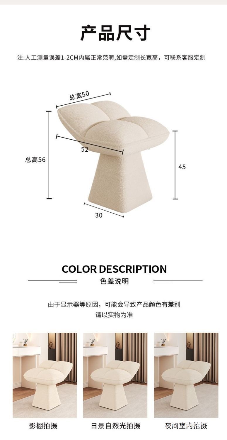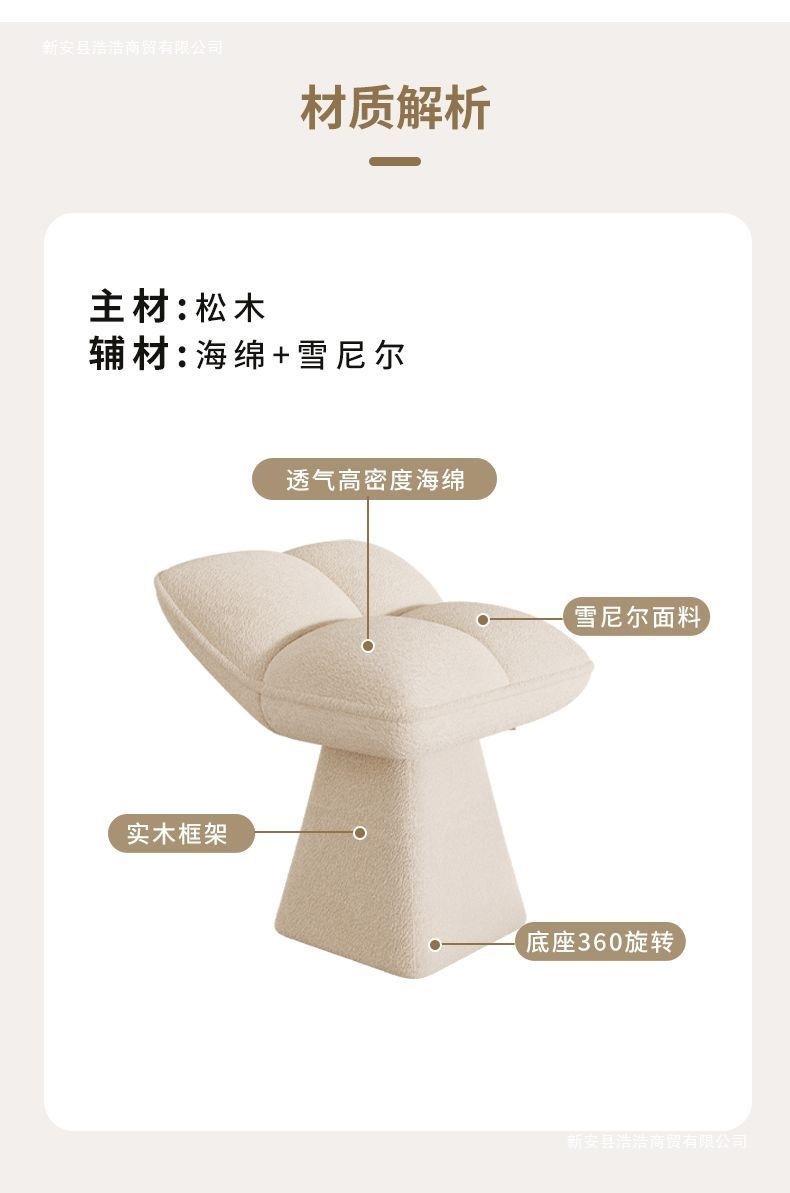 イタリアのデザイナードレッシングスツール回転可能な無垢材の靴交換メイクアップハイエンドスツールクリームスクエアブレッドサンドスツール