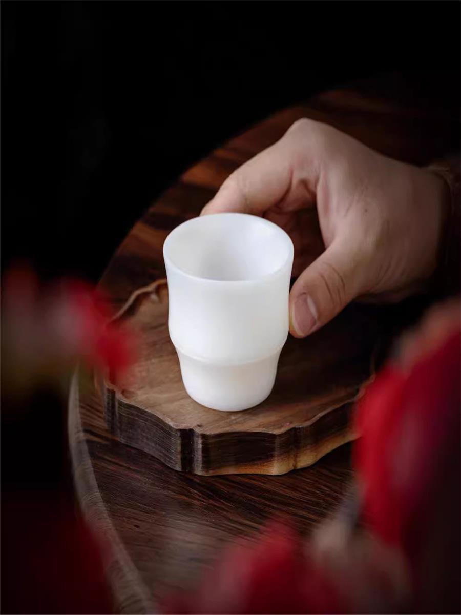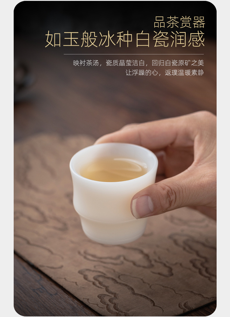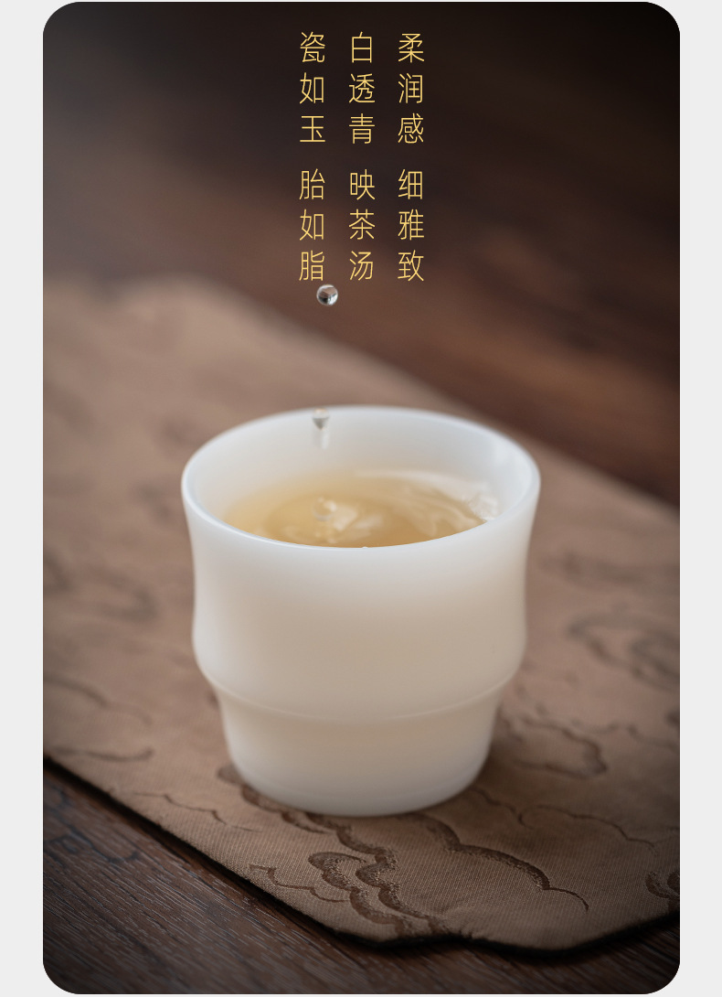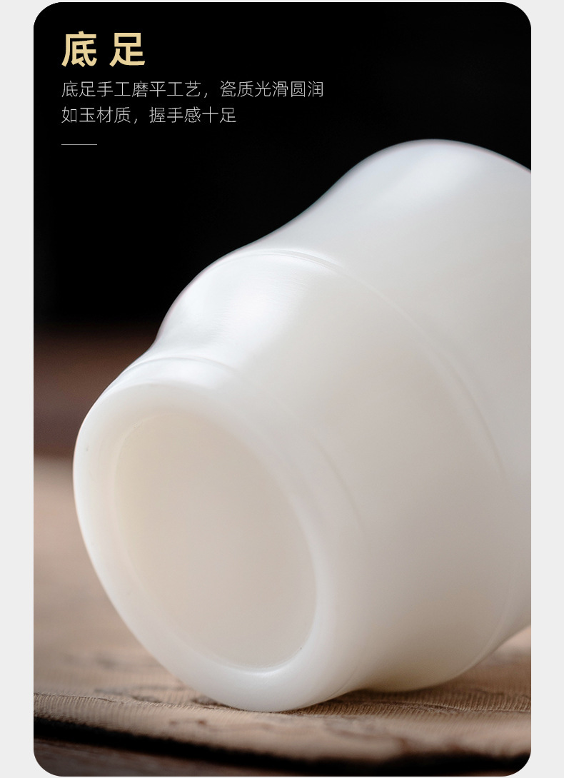 氷種白磁マスターカップ、高級大型パーソナルカップ、ティーカップギフトボックス、中国式羊脂翡翠磁器竹カップ、シングルカップ