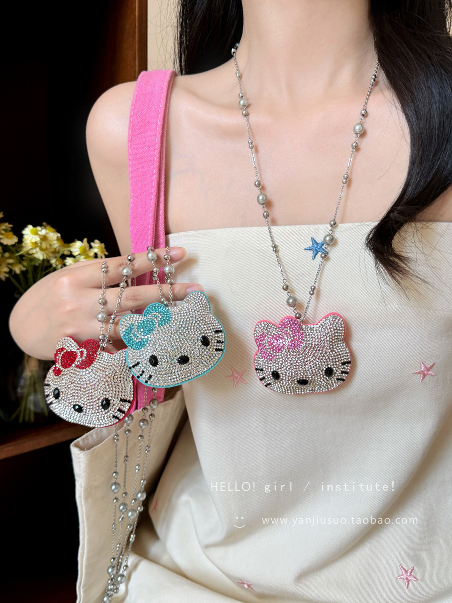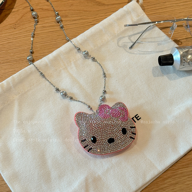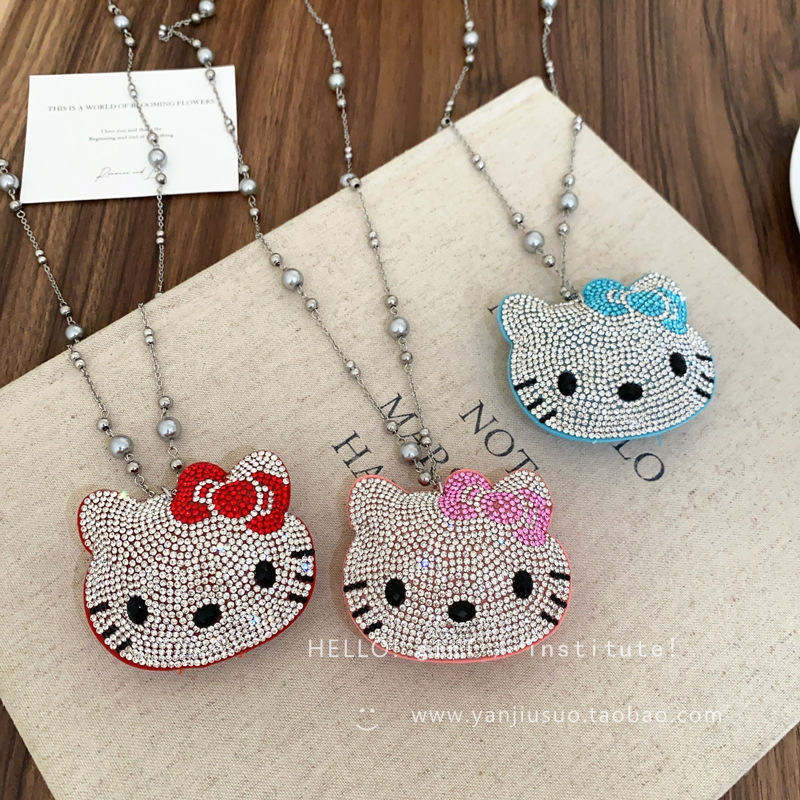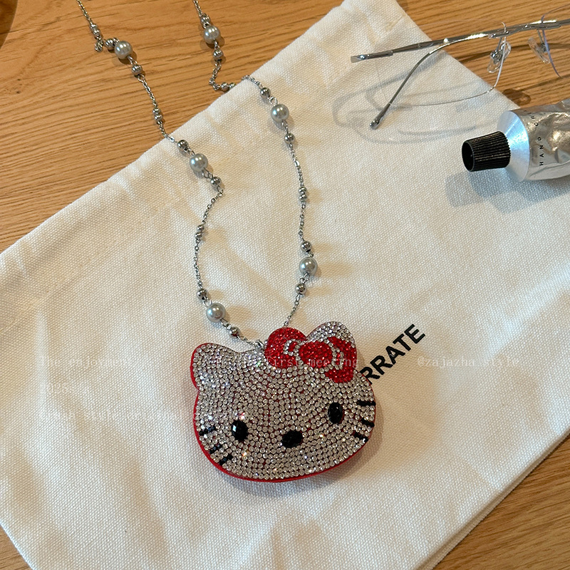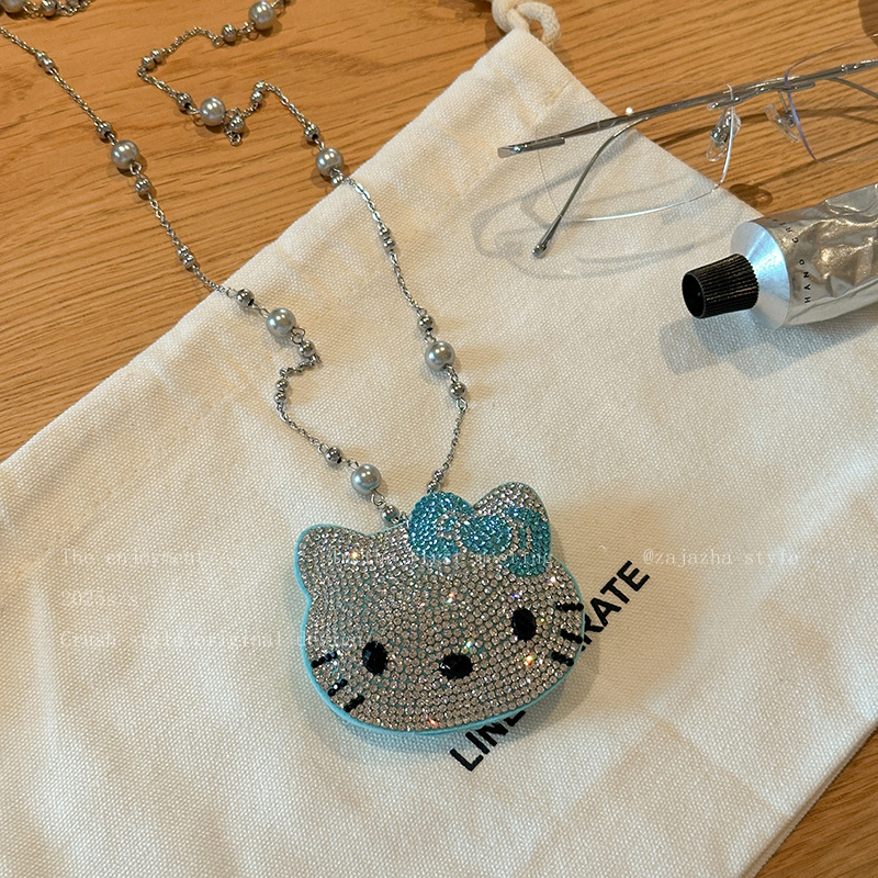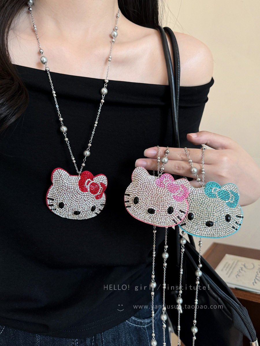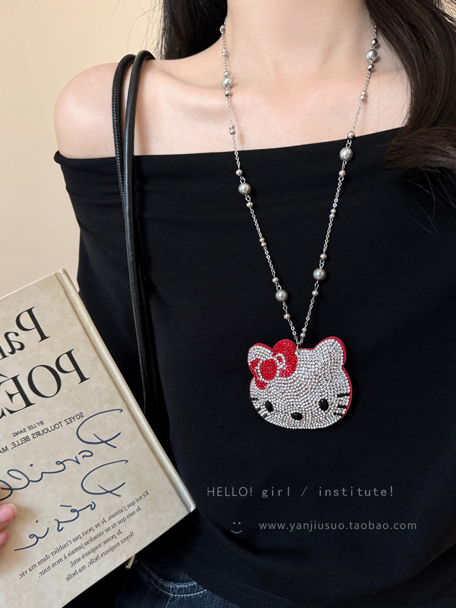 可爱镶钻kt猫珍珠项链女轻奢小众高级感长款甜酷风卫衣毛衣链配饰