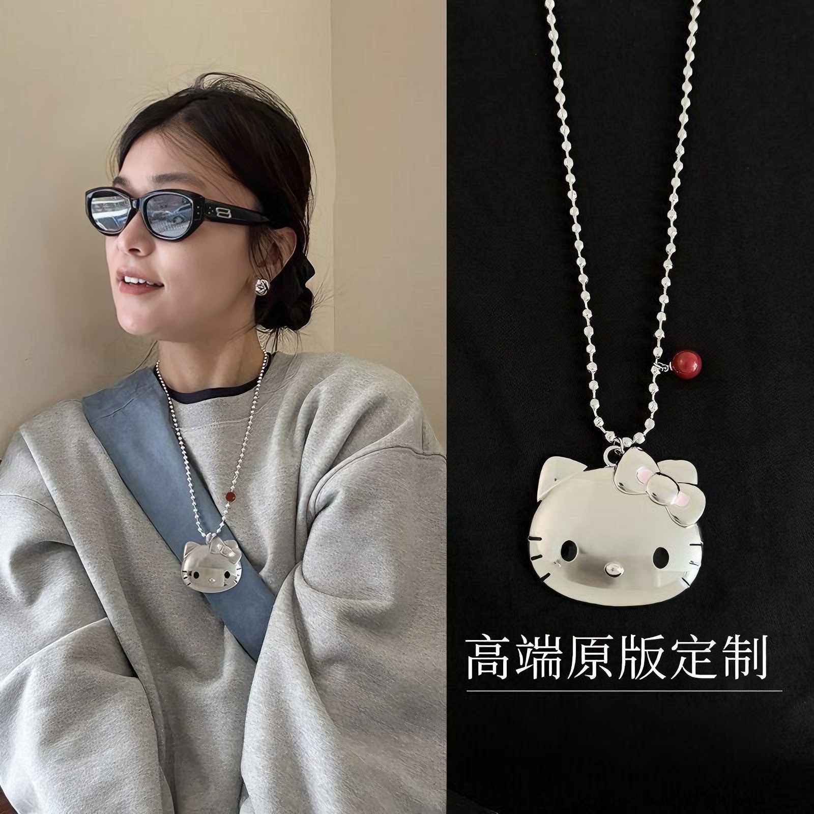 甜酷少女!小众设计感KT猫吊坠项链女2025新款甜美毛衣链长款配饰