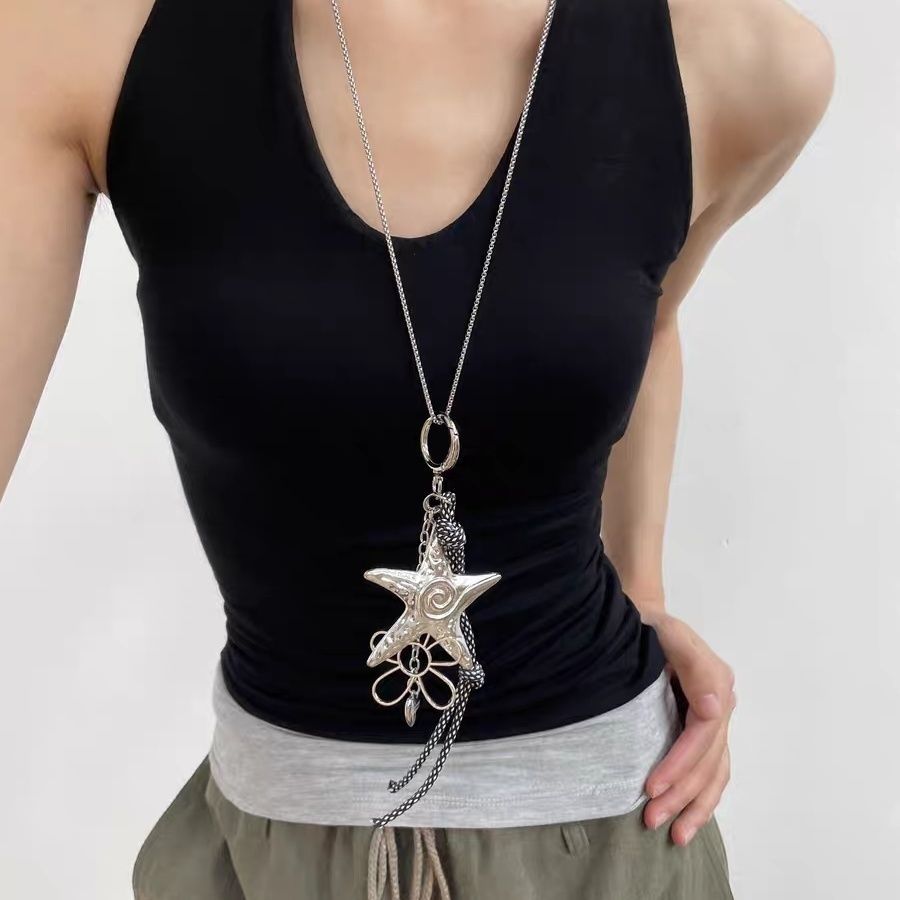 シンプルで甘いクールな風の自作星の花の長いネックレスy2kギャルは多機能のキーホルダーを合わせて掛けます。