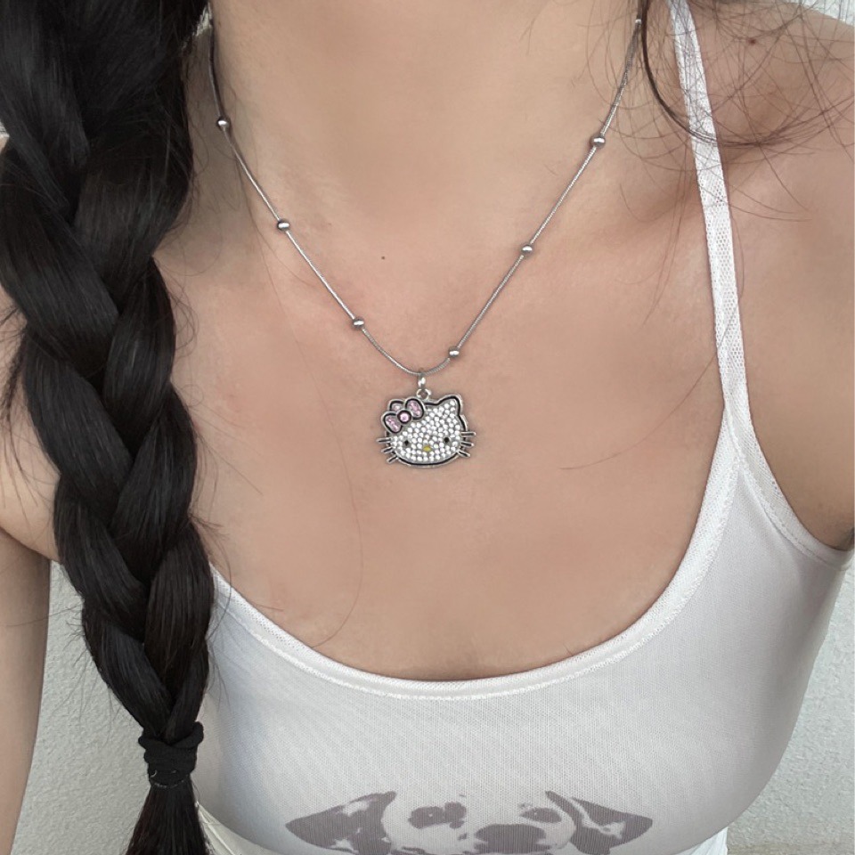可爱いキティ猫ペンダントネックレスレディースインスタ风ミレニアムギャルシンプルシルバー锁七夕プレゼントケイティ