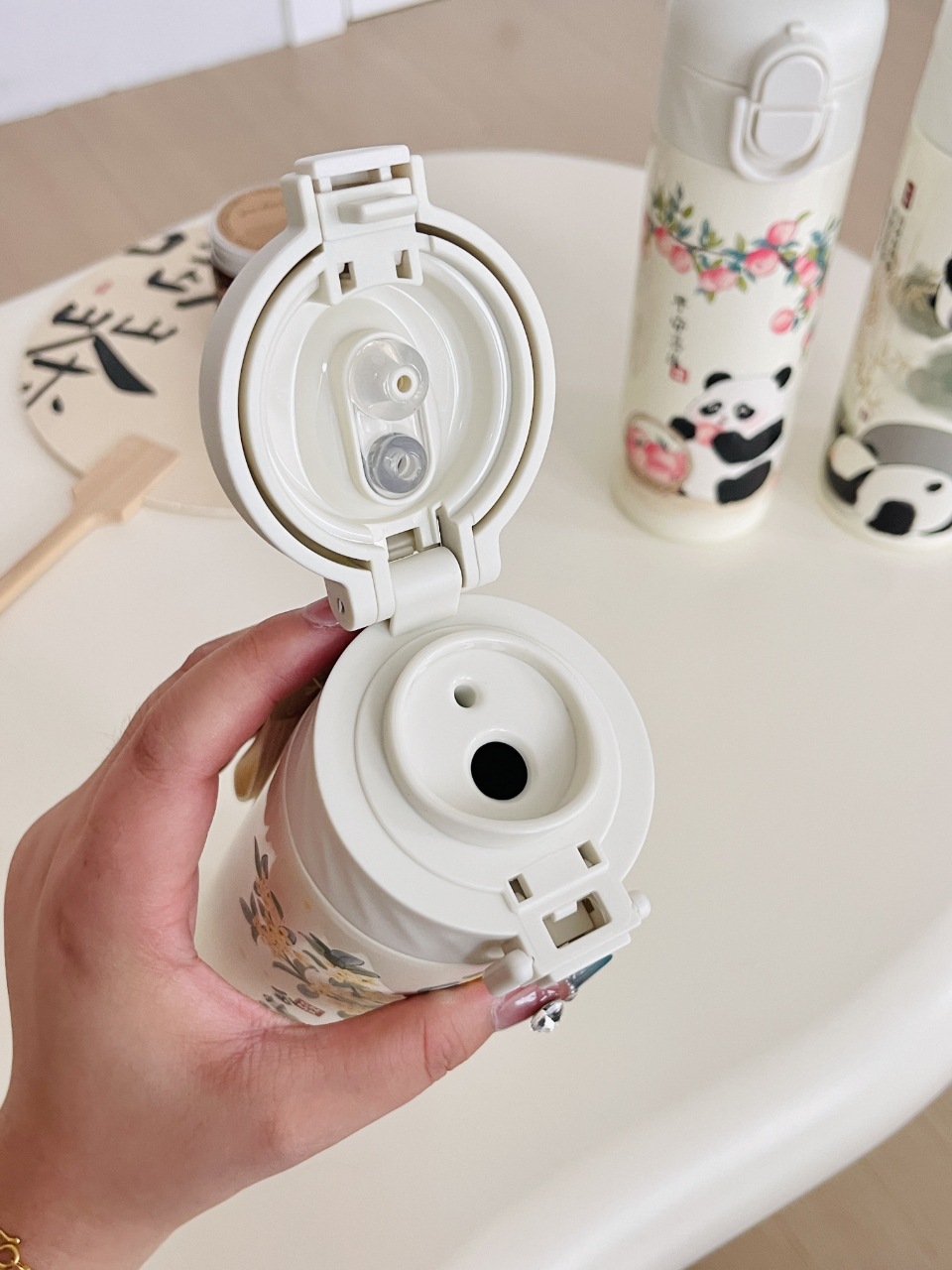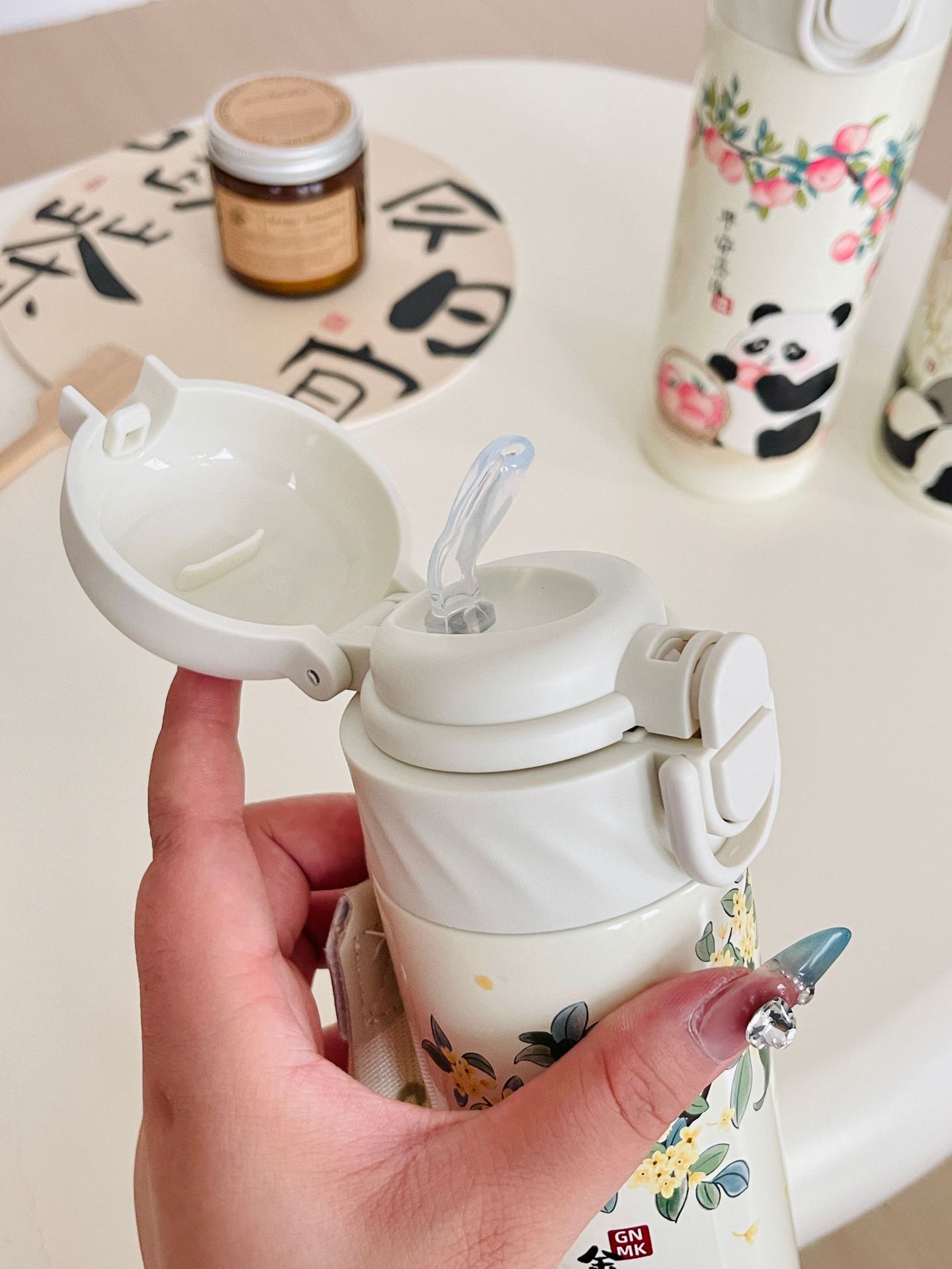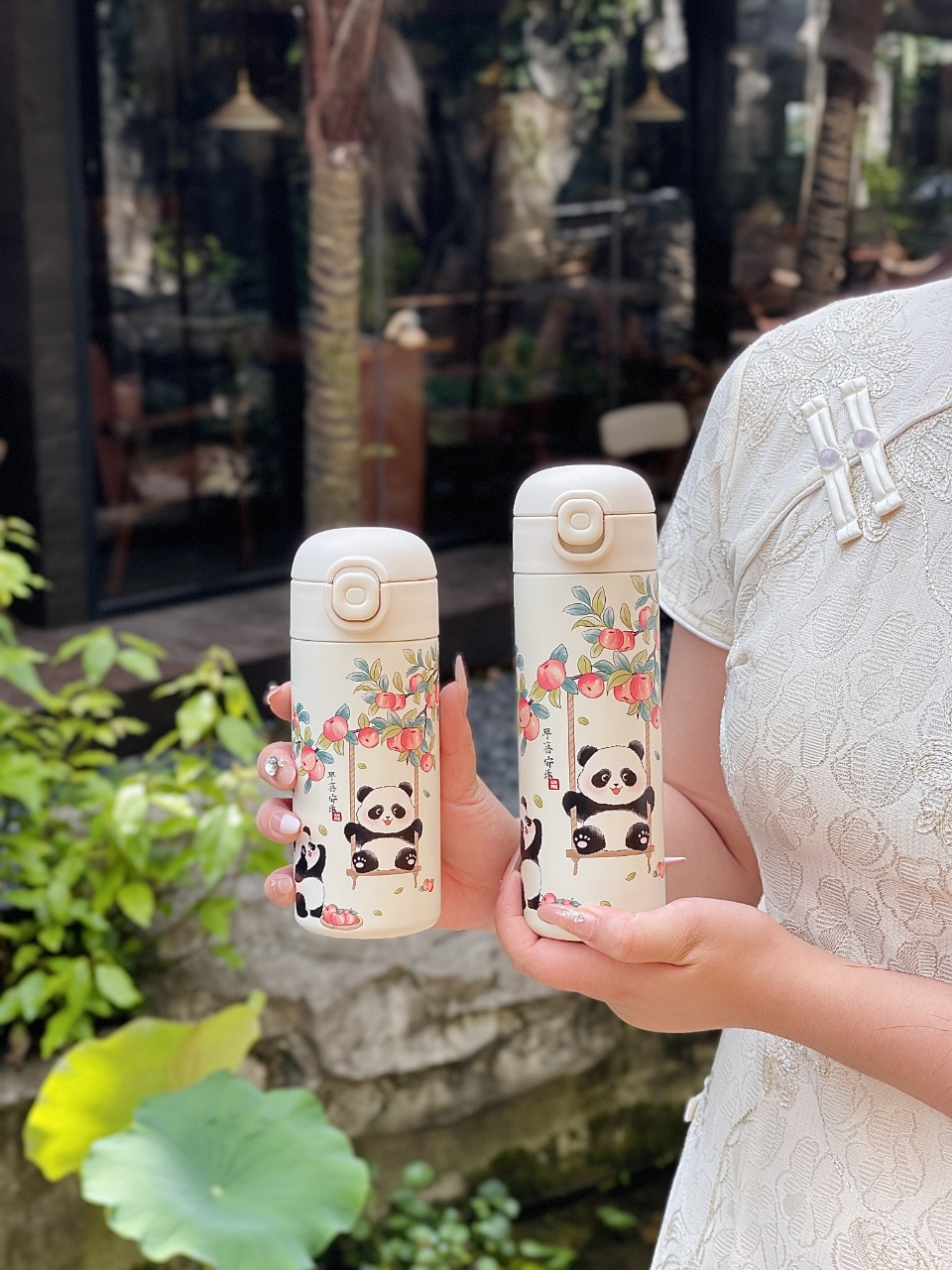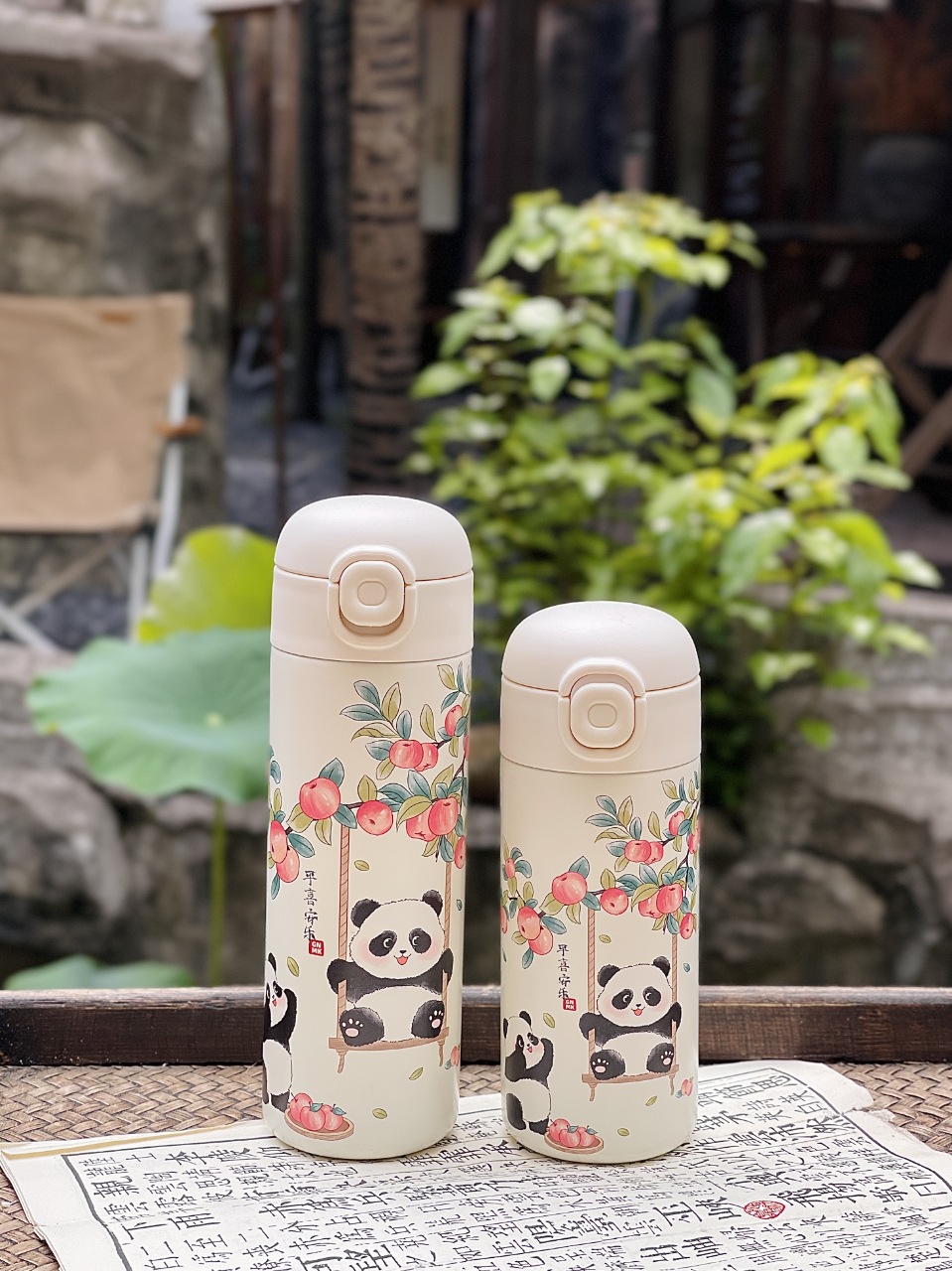 パンダ魔法瓶カップ 430ml(レッド),パンダ魔法瓶カップ 340ml(レッド),パンダ魔法瓶カップ 430ml(グリーン),パンダ サーモスカップ 340ml (グリーン)