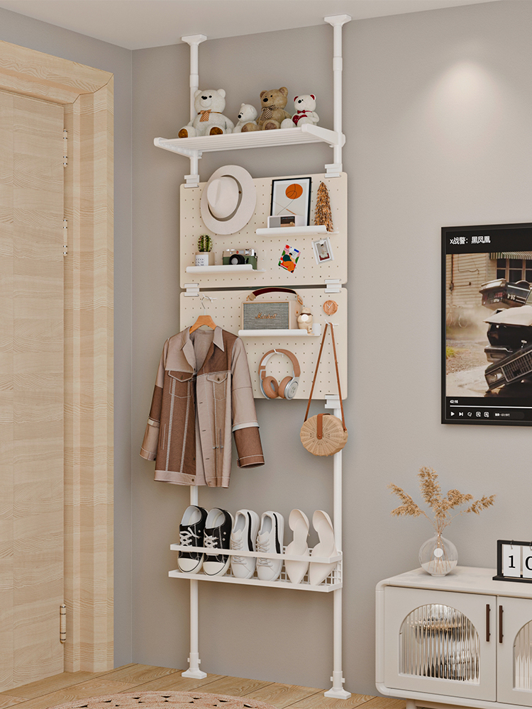 玄関ドアの後ろに設置されたコートラック、ホールボードシューズラック、一体型天井から床までの洋服ラック、玄関ドアの洋服ラック