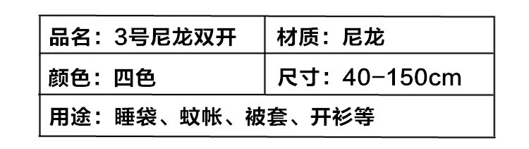 No.3 ナイロン両頭ダブルオープンジッパー子供用寝袋細歯取り外し可能なジッパーアクセサリー防護服ジッパー
