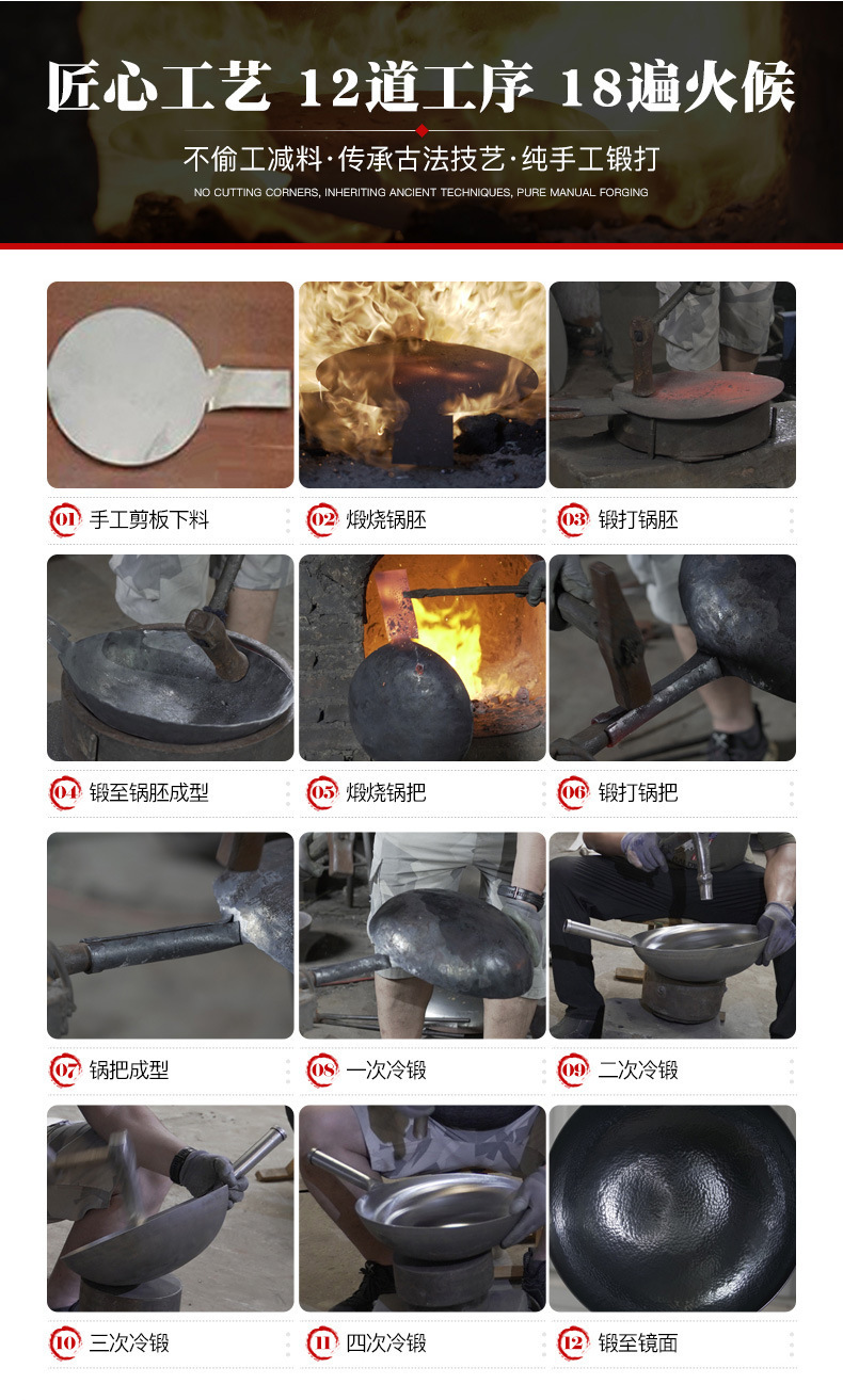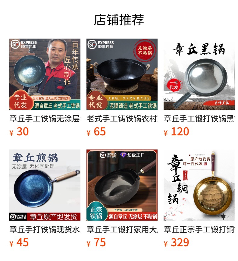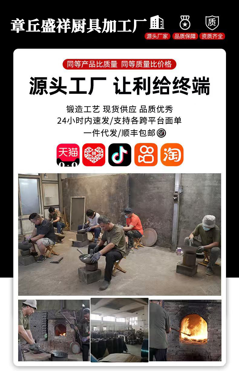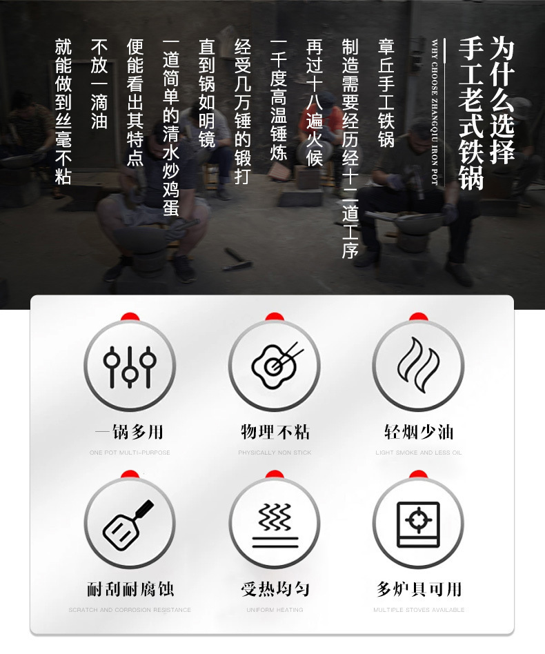 章丘手工铸铁煎锅平底锅无涂层燃气灶家用商用生铁锅烙饼双耳煎盘